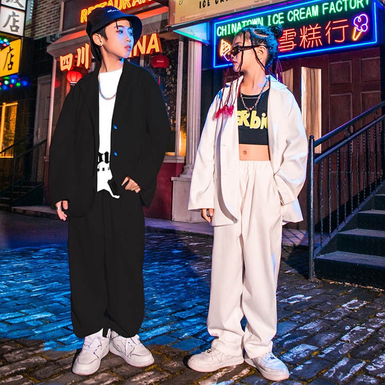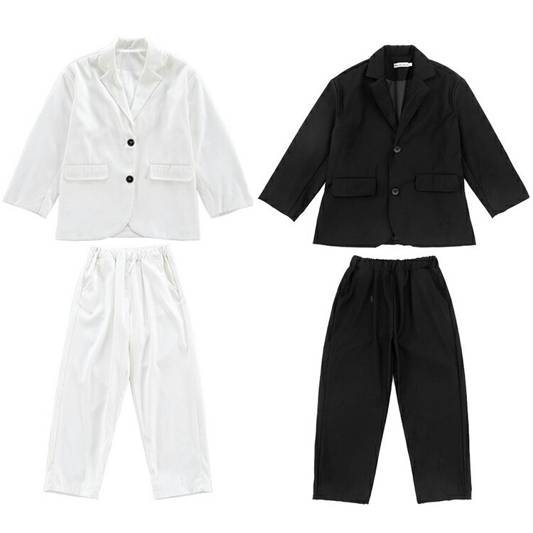 キッズダンス 衣装 セットアップ ヒッ レディースファッション 通販 黒2点セット 白2点セット 120 130 140 150 160 170 180