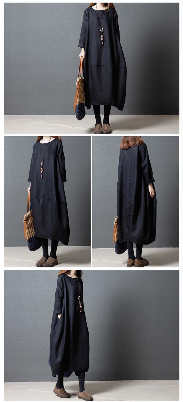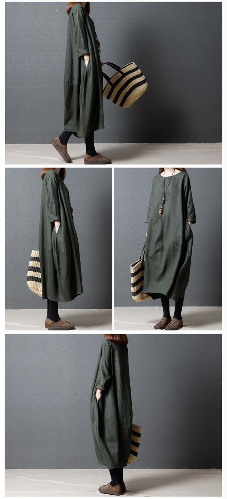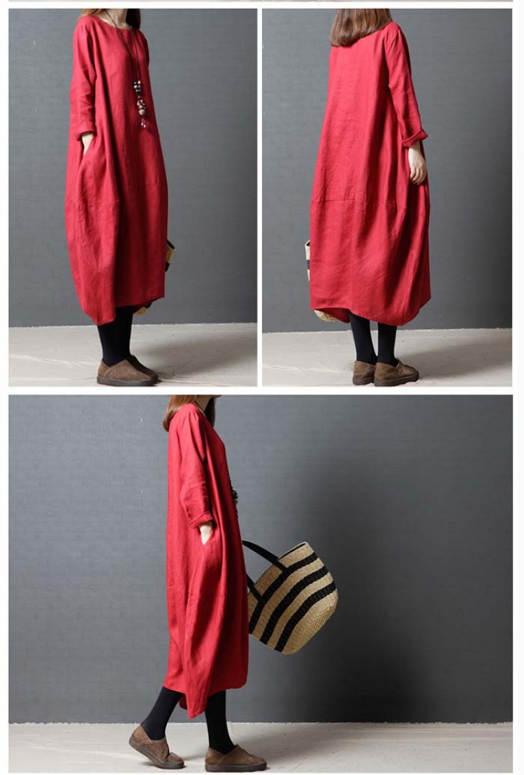 ワンピース 春 長袖 レディース ロン 赤 黒 緑 M L XL XXL