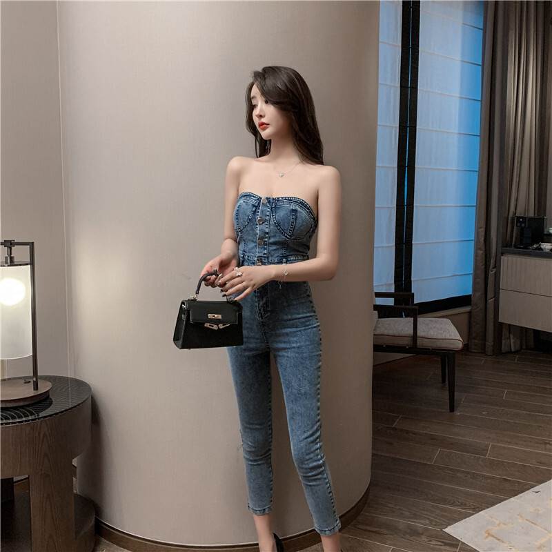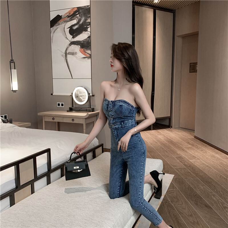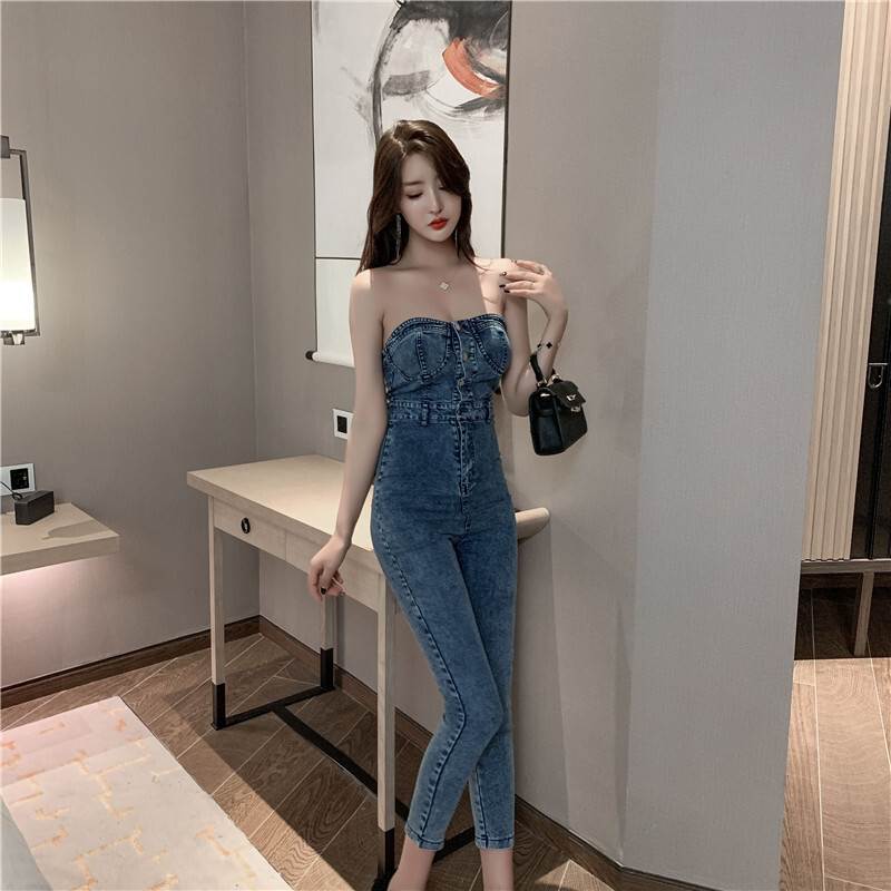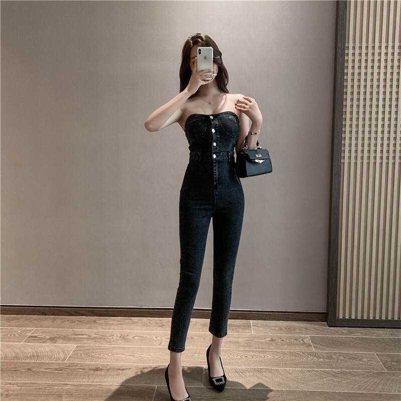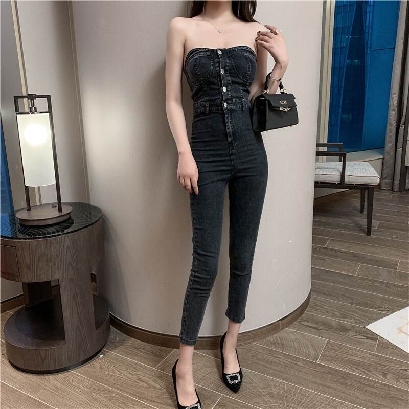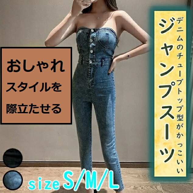 ジャンプスーツ 袖なし レディース オ オールインワン サロペット 新作 ブルー ダークグレー S M L