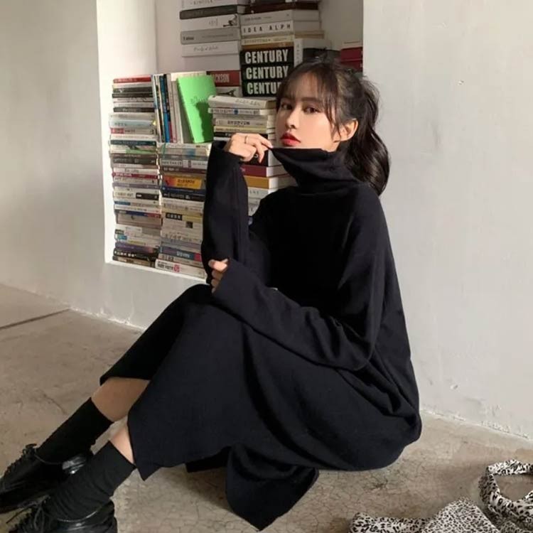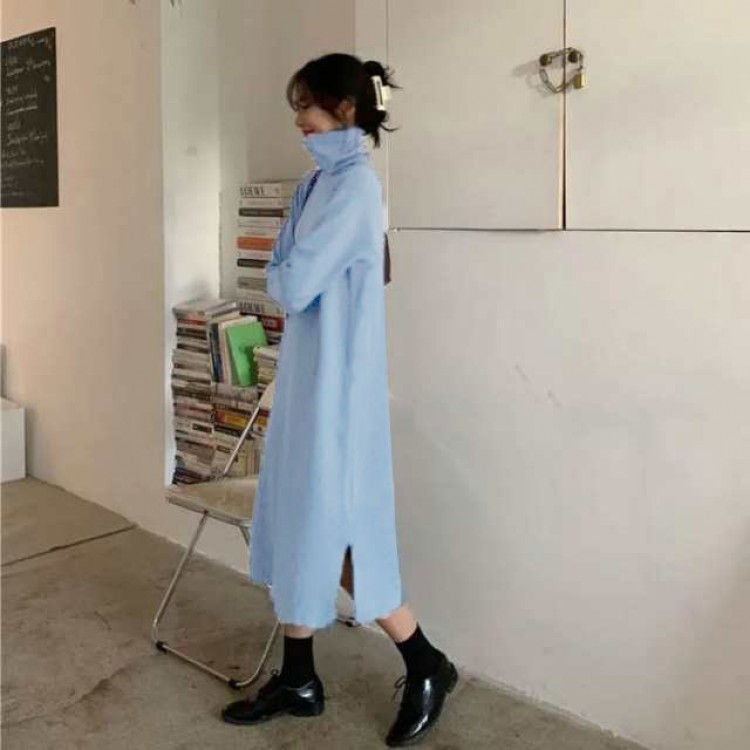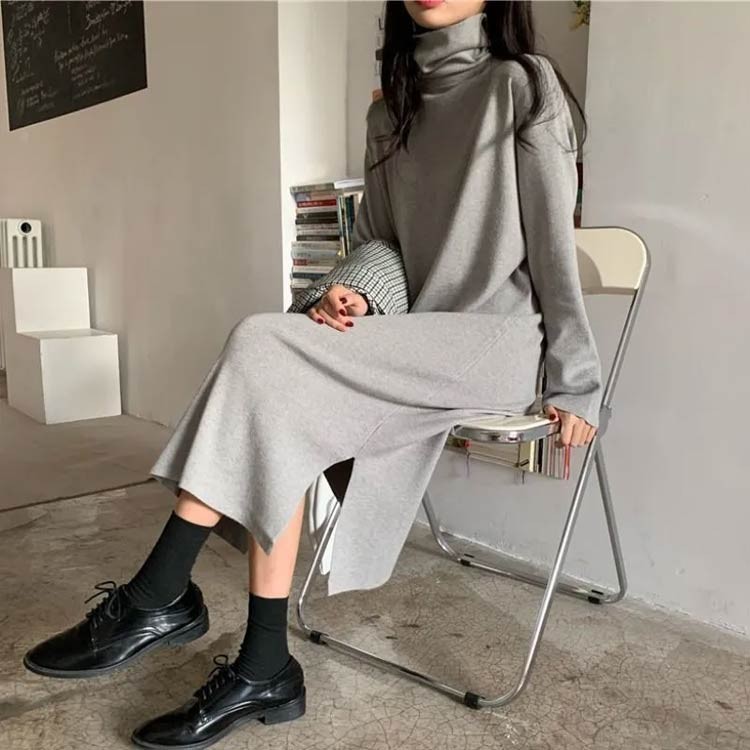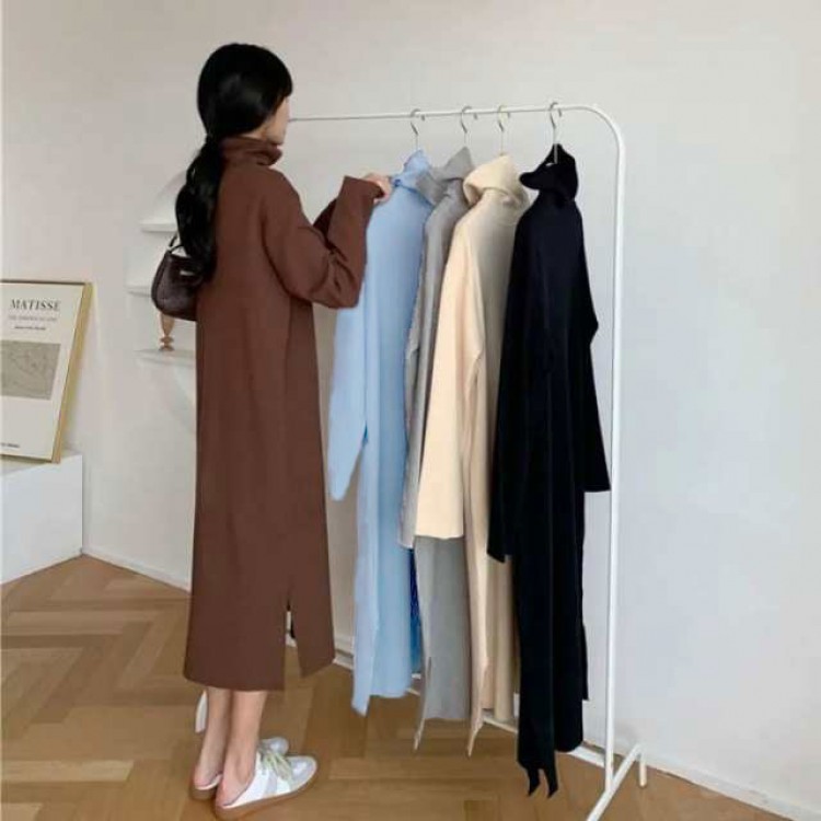 ワンピース レディース タートルネック ブラック グレー コーヒー ブルー ベージュ XL 2XL S M L