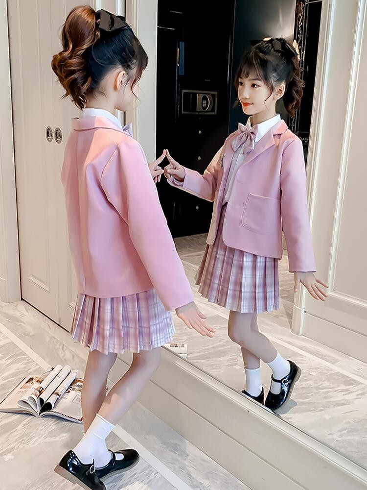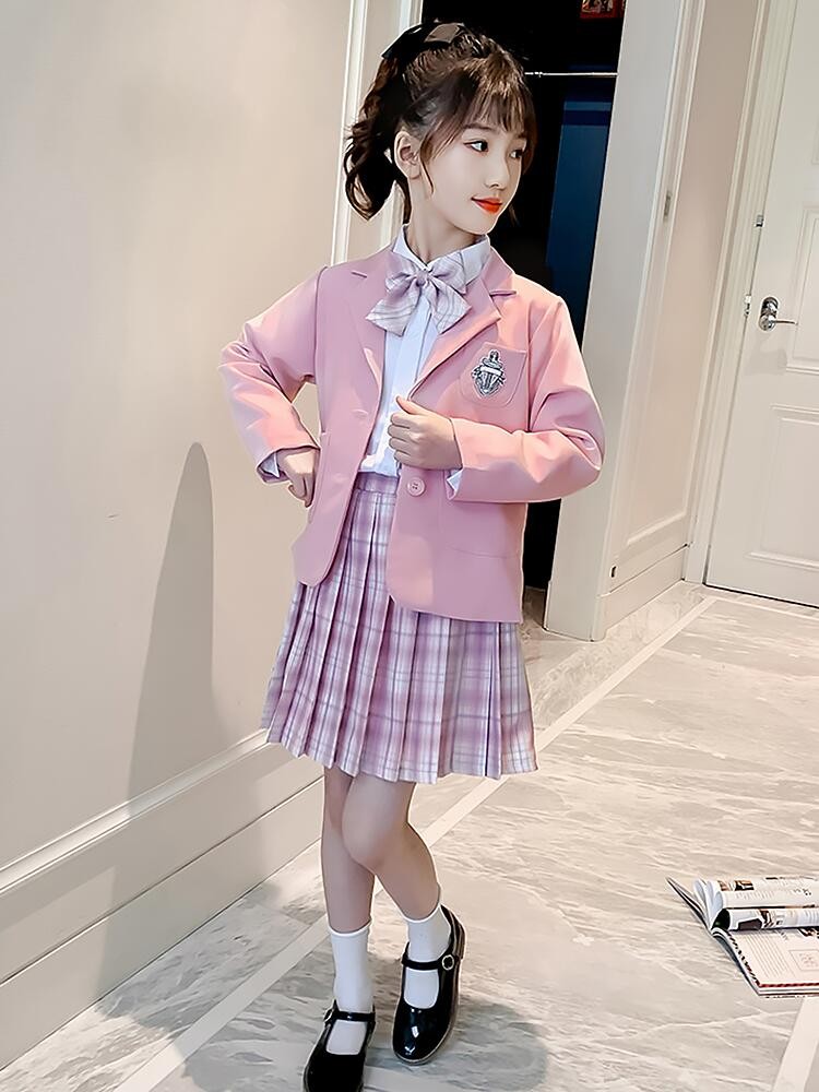 キッズ ダンス衣装 セットアップ 女の キッズ ベビー マタニティ 豊富 ブルー ピンク シャツセット+スカート ジャケット+シャツセット+スカート
