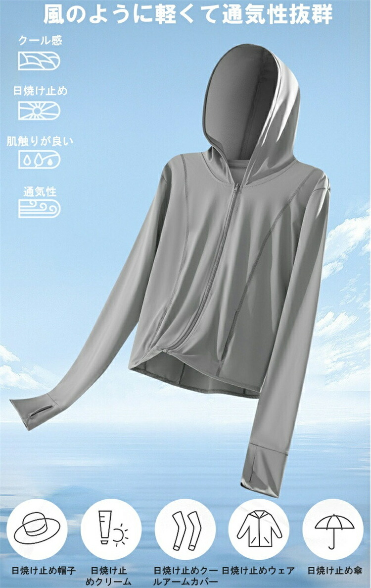 UV パーカー 涼しい uv カット トップス パーカー 新作 S M L ピンク ホワイト グレー ブラック