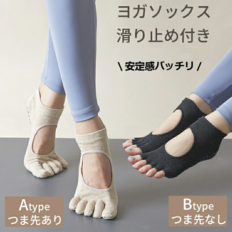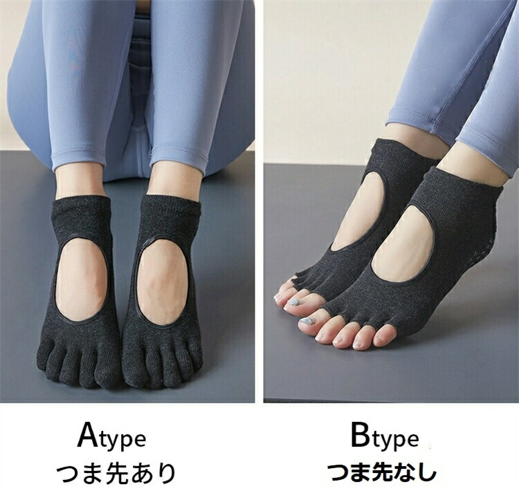 ヨガソックス 滑り止め付き 5本指 選 ブラック 2点 イエロー 2点 ピンク 2点 グレー 2点 ベージュ 2点 A type B type