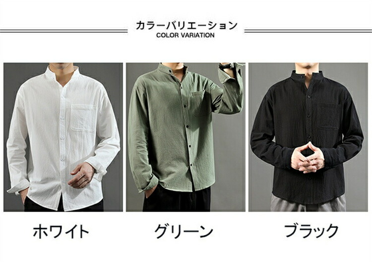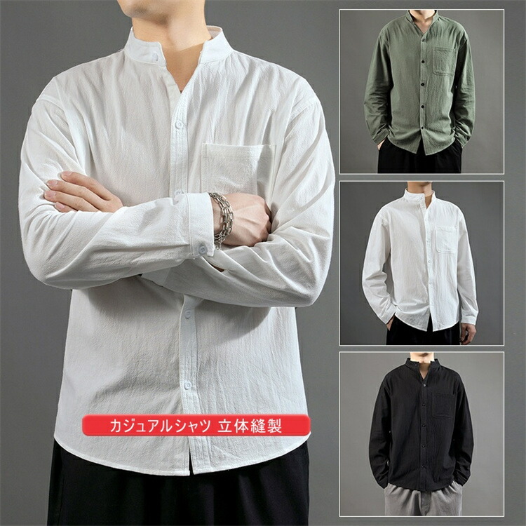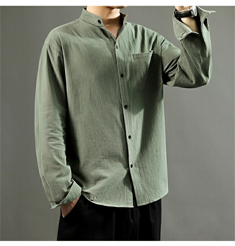長袖シャツ 夏 春 リネンシャツ メン メンズファッション 早い者勝ち M L XL 2XL 3XL 4XL 5XL ホワイト グリーン ブラック
