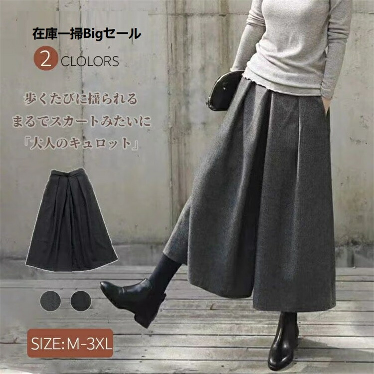 ガウチョパンツ 春服 フレアパンツ ス レディースファッション 特集 ブラック グレー ライトグレー S M L XL 2XL 3XL