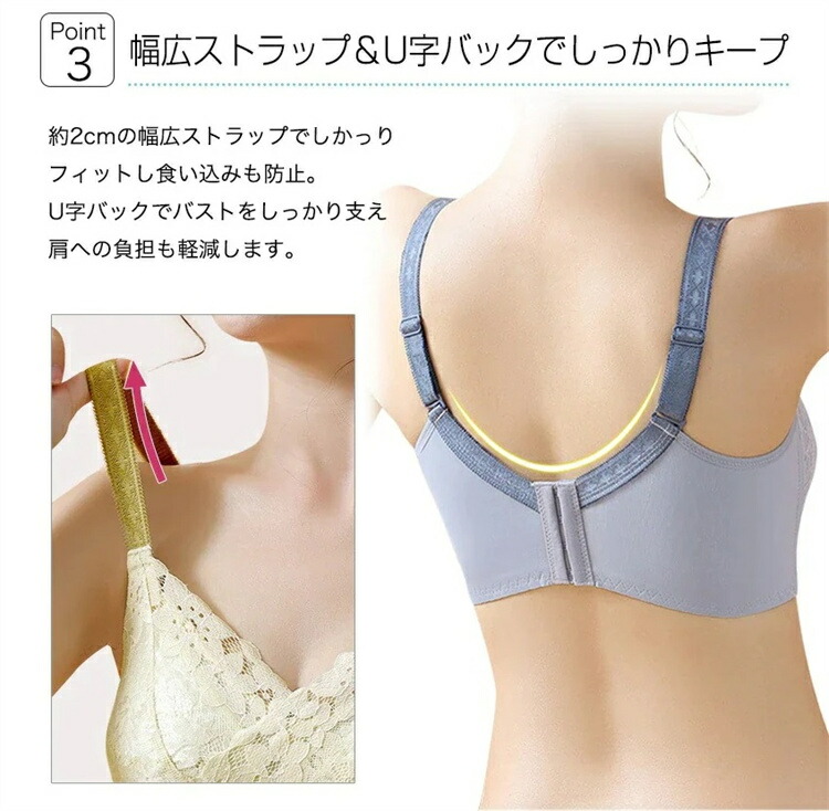 U字バックでバストをしっかり支え肩への負担も軽減します。