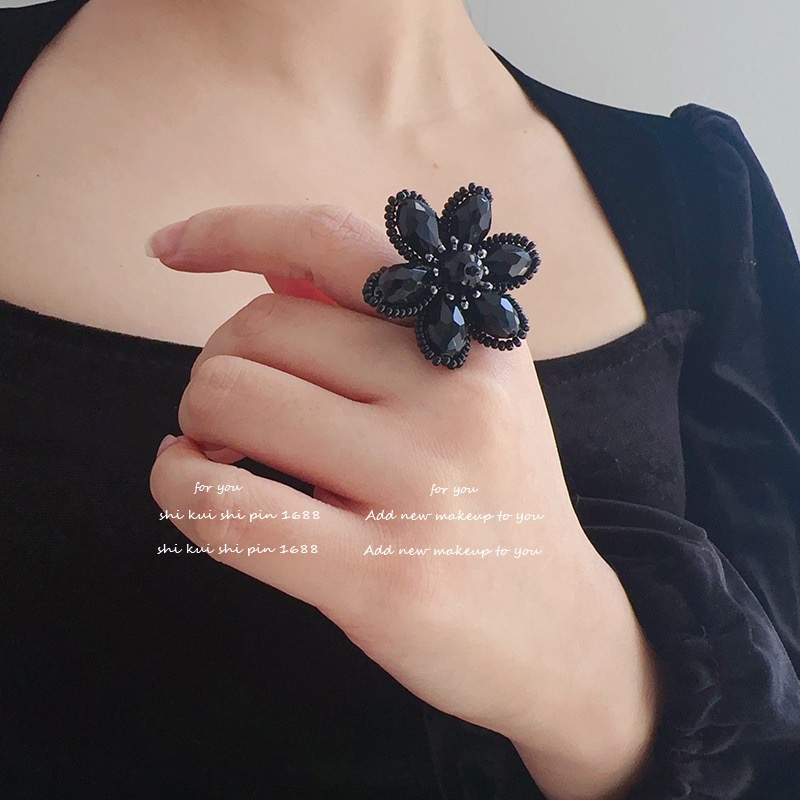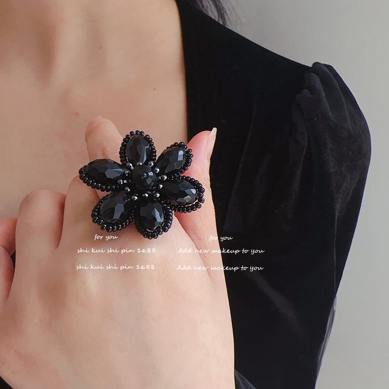 存在感抜群 ブラックフラワー オープン ジュエリー アクセサリー 豊富な品揃え
