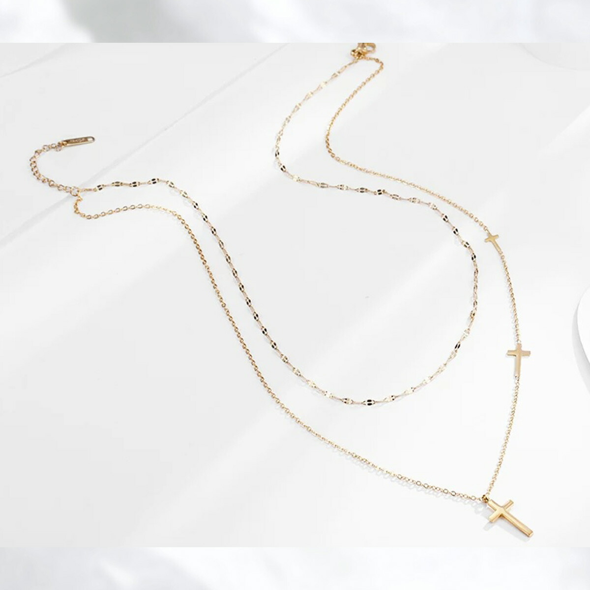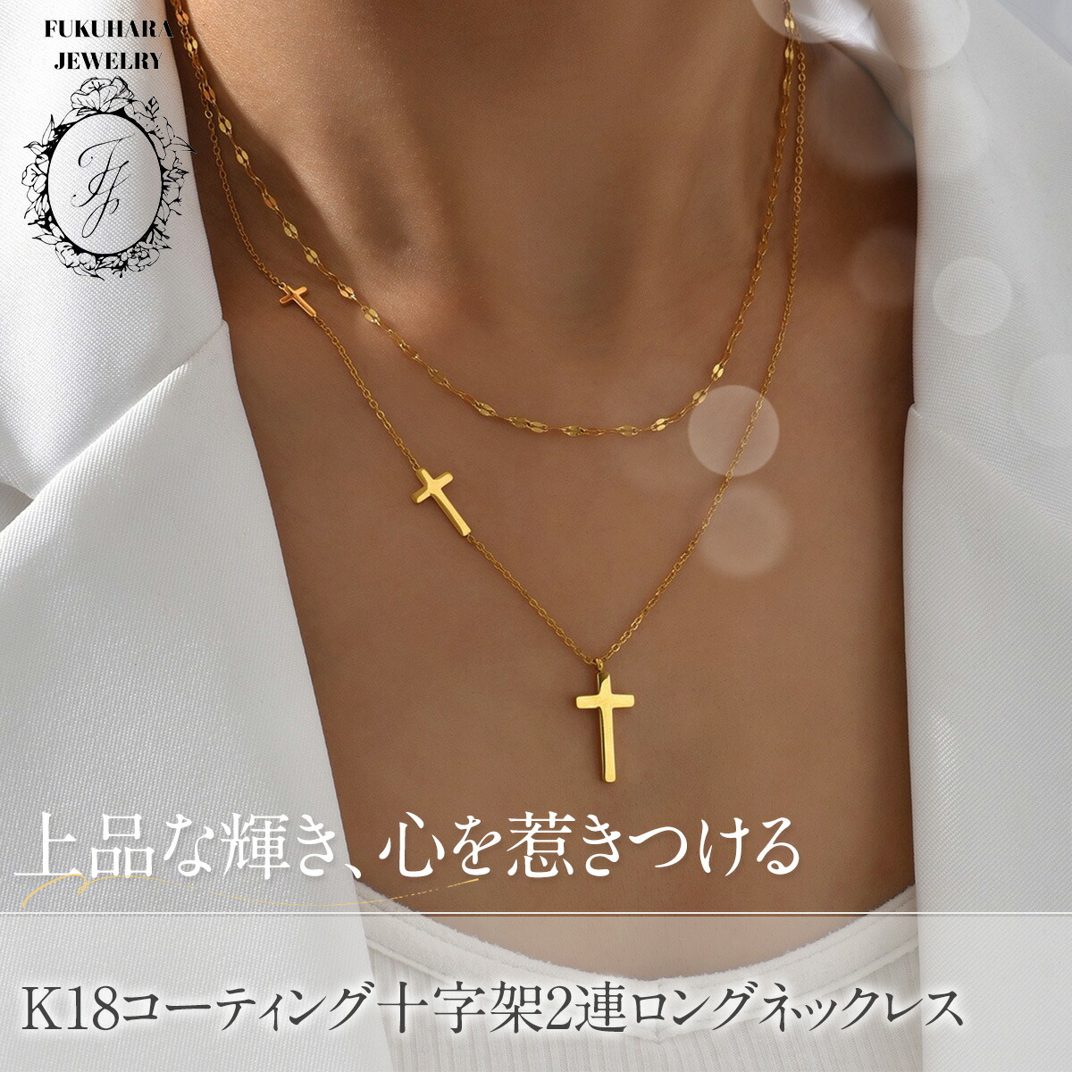 K18コーティング2連ロングネックレスジュエリー アクセサリー レディースジュエリー ネックレス ペンダント