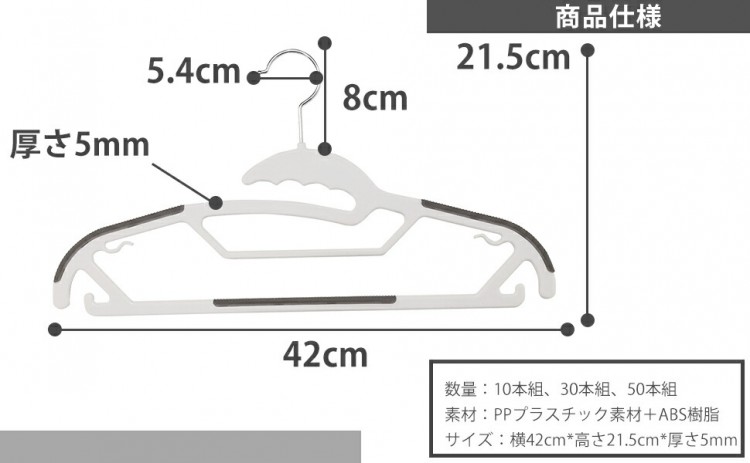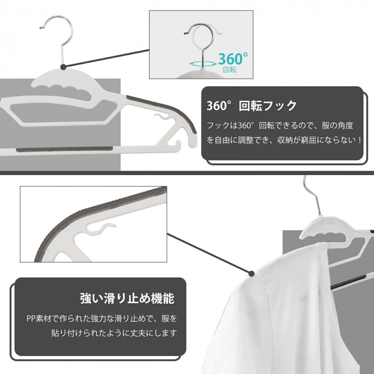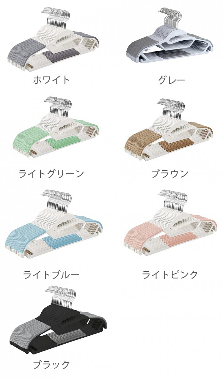 多機能ハンガー 10本 30本 50本 10本セット 30本セット 50本セット ホワイト グレー ブラック ブラウン ライトピンク ライトブルー ライトグリーン