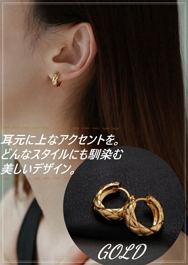 キルティング ピアス フープピアス サージカルステンレス 金属アレルギー アレルギーフリー 18K シルバー ゴールド 大人 上品 きれいめ 可愛い 人気 トレンド プレゼント レディース 高 ギフト