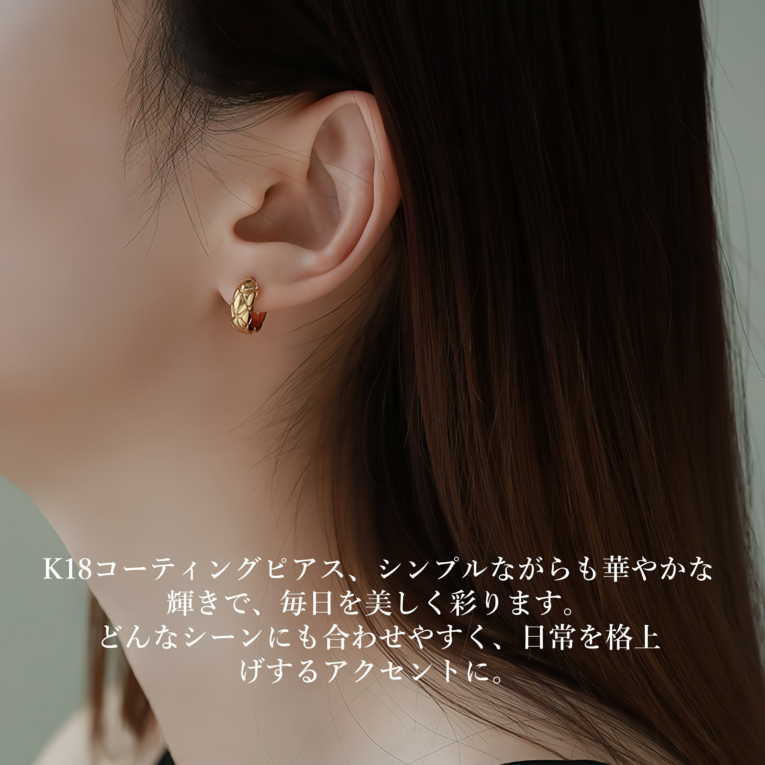 シンプルでありながら、洗練された輝きを放つこのイヤリングは、K18コーティングが施され、どんなシーンでも輝きを持続。自然の光を浴びることで、その上品な輝きがより一層引き立ち、耳元を華やかに演出します。