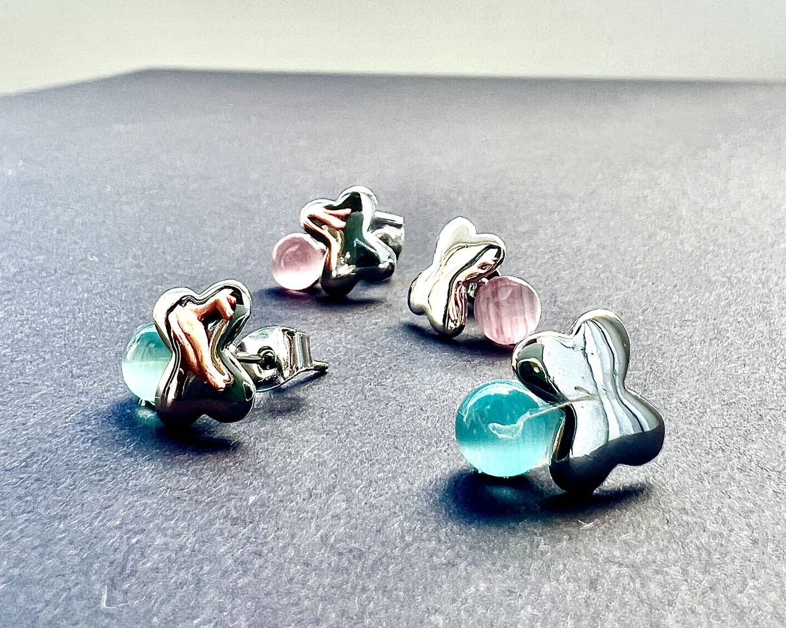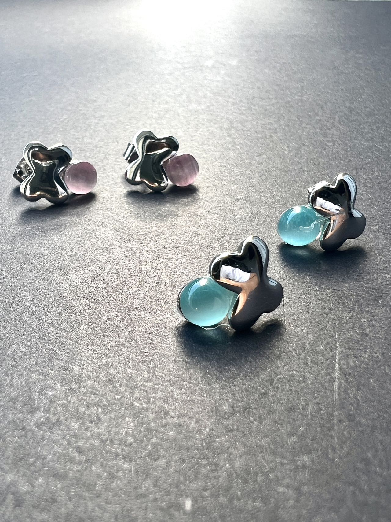 かわいい天然石風 丸玉パールピアス&立 ジュエリー アクセサリー 豊富 PINK BLUE