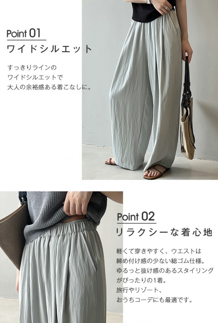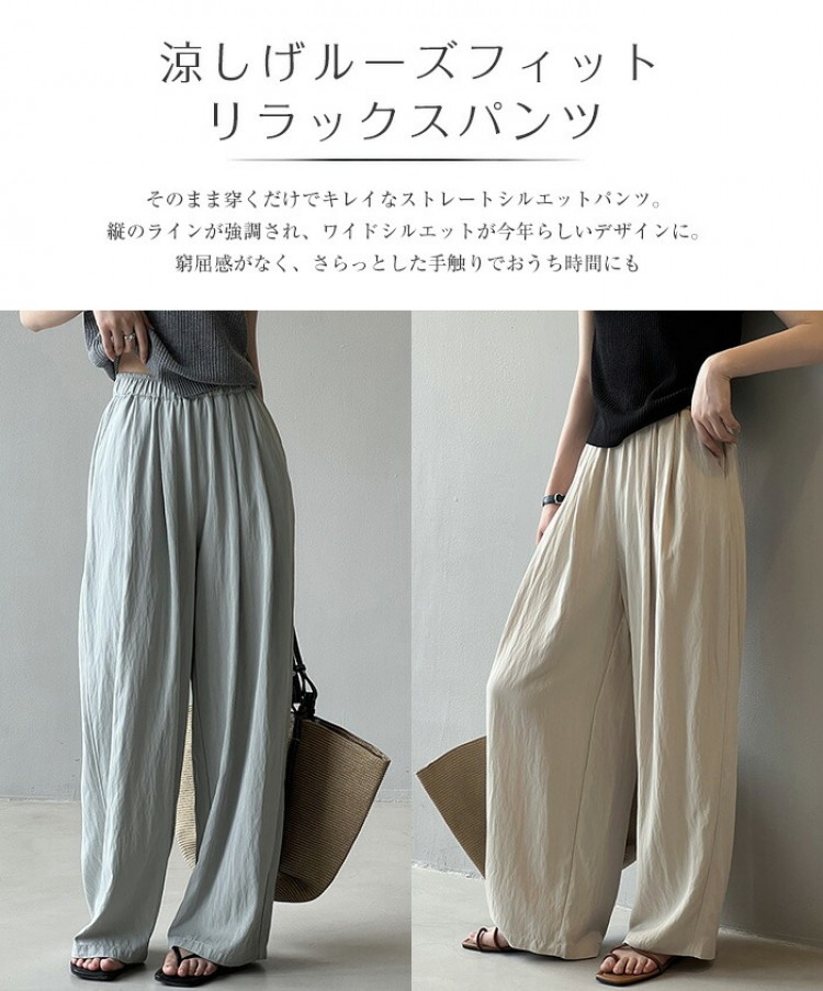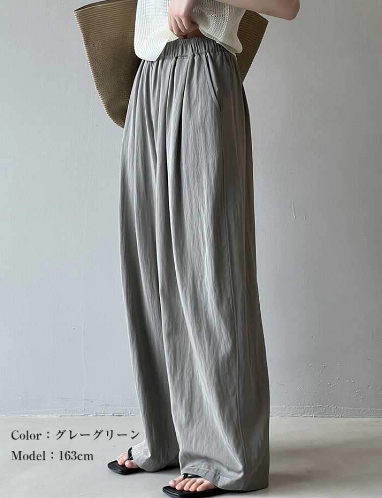 ワイドパンツ レディース きれいめ 春 ベージュ グレーブルー グレーグリーン ブラック M L