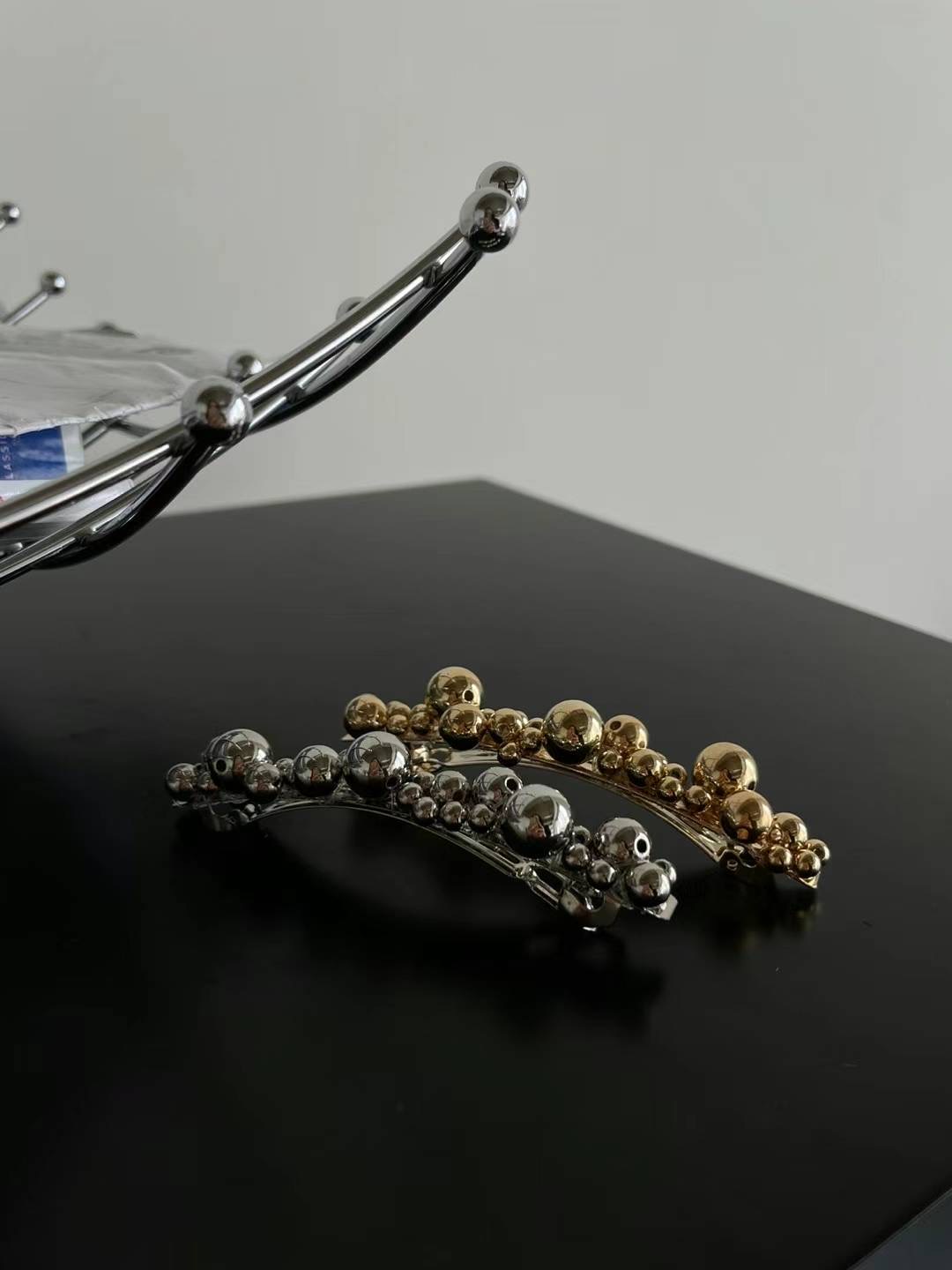 メタルボールバレッタ トレンド 韓国製 ジュエリー アクセサリー 豊富な品揃え ゴールド シルバー