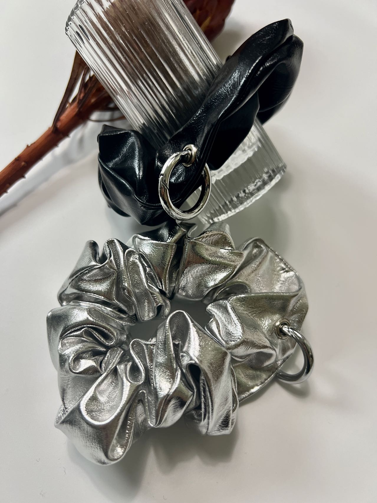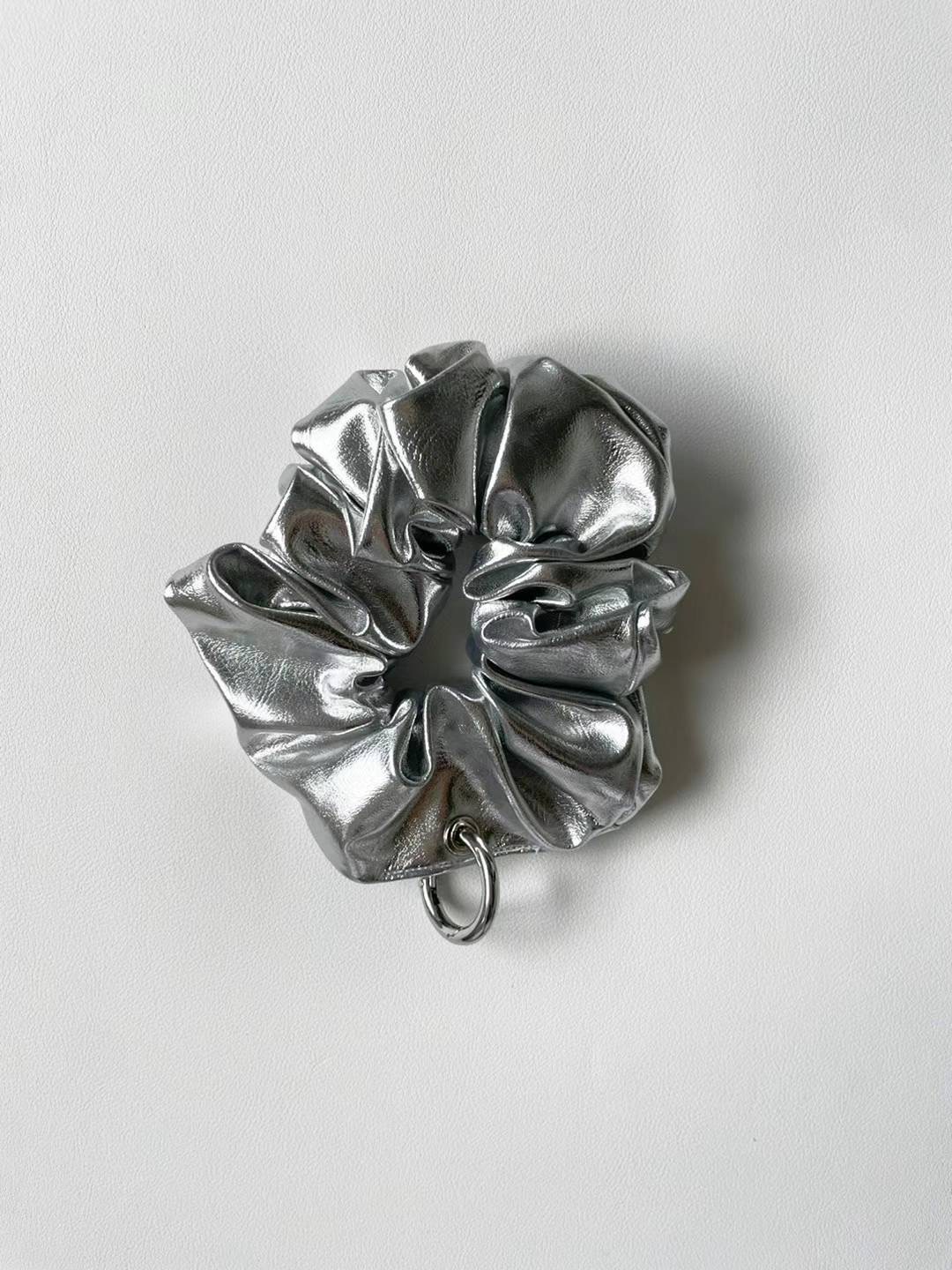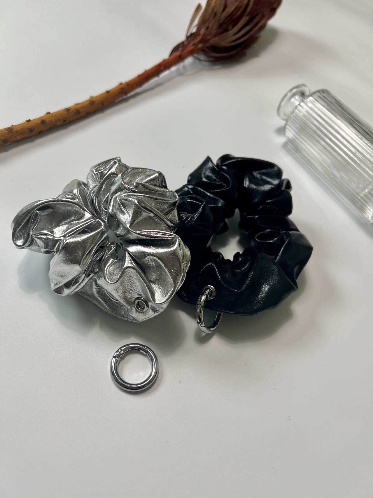 高品質 レザー シュシュ シンプル 大 レディースジュエリー アクセサリー ヘアアクセサリー シュシュ 豊富 ブラック シルバー
