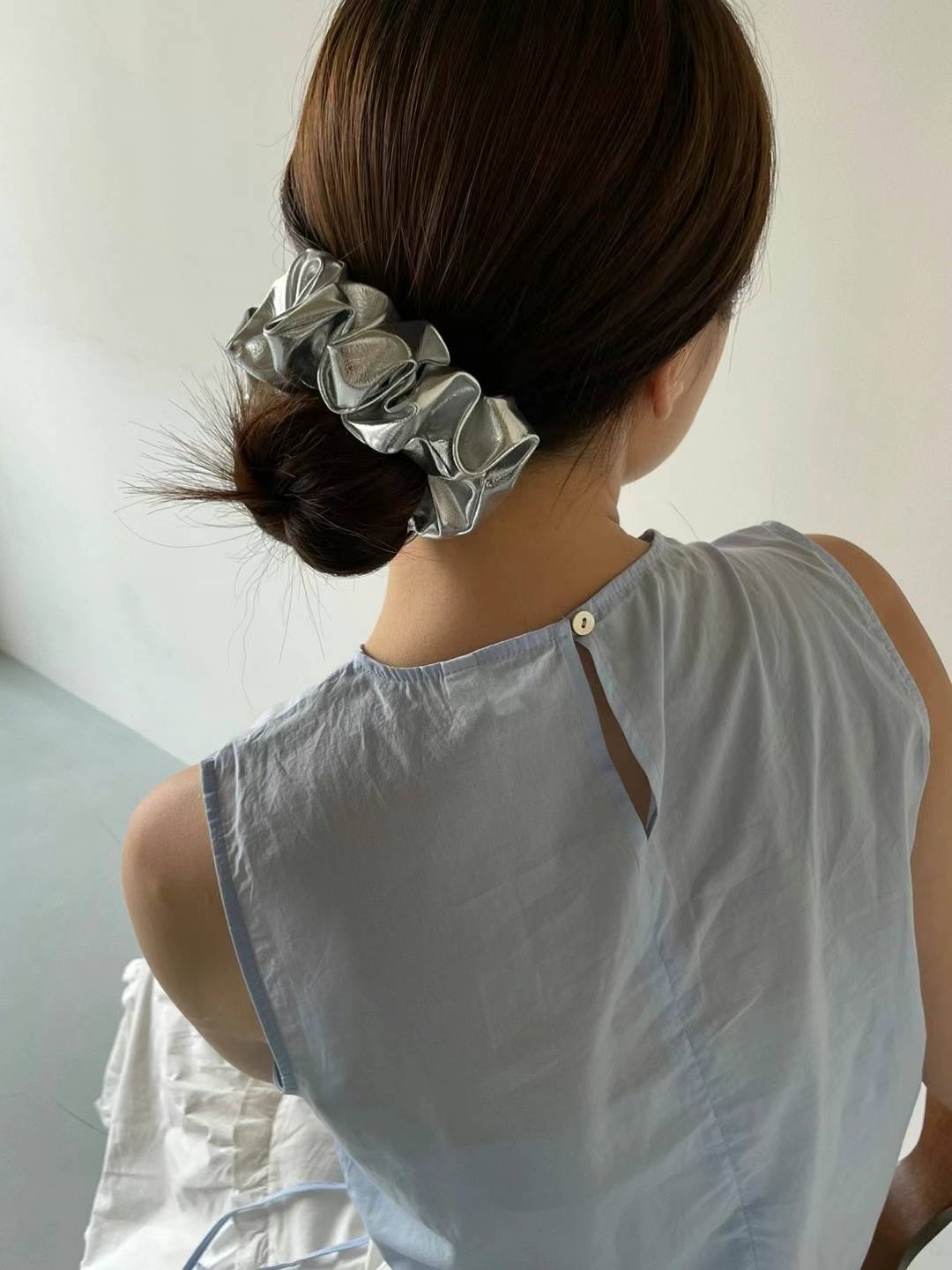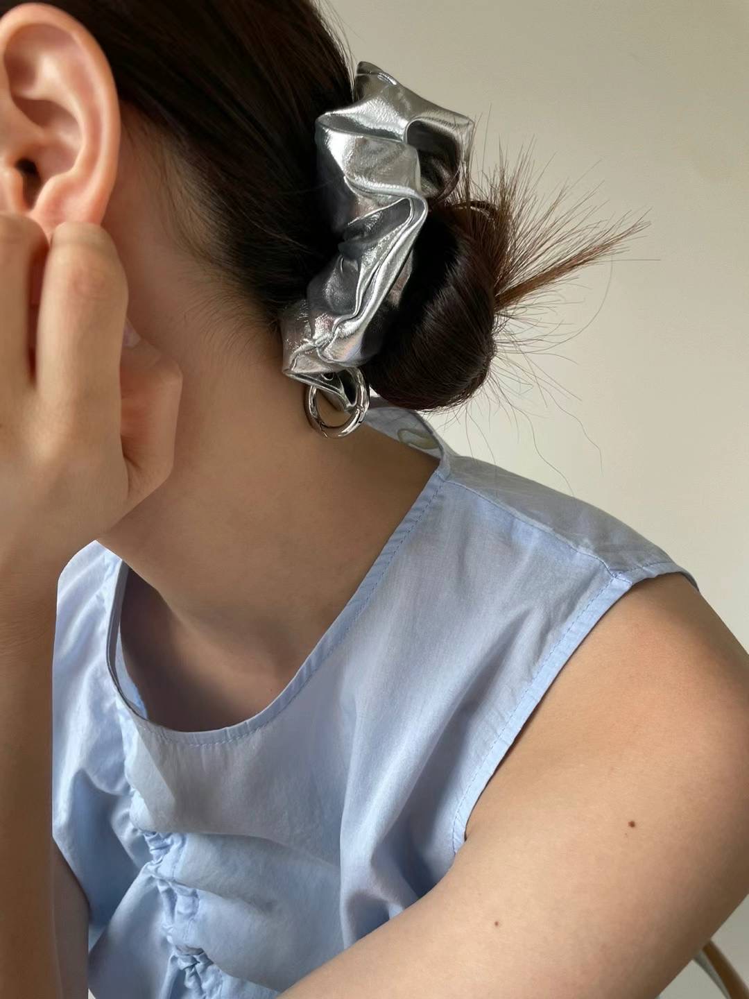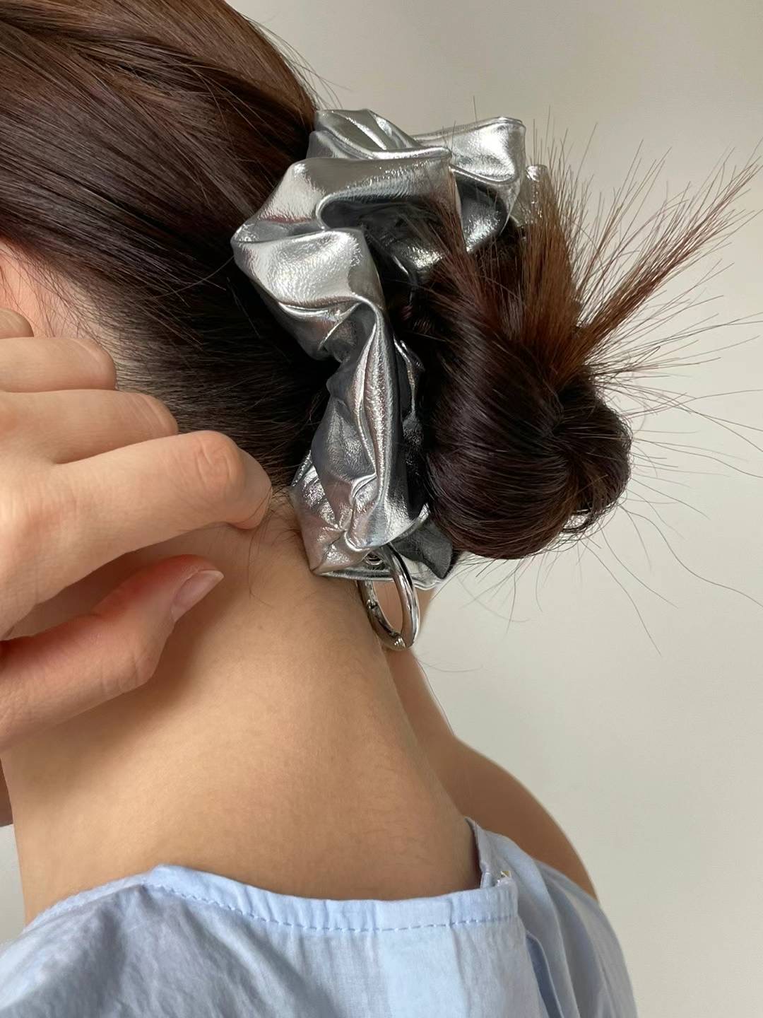 高品質 レザー シュシュ シンプル 大 レディースジュエリー アクセサリー ヘアアクセサリー シュシュ 豊富 ブラック シルバー