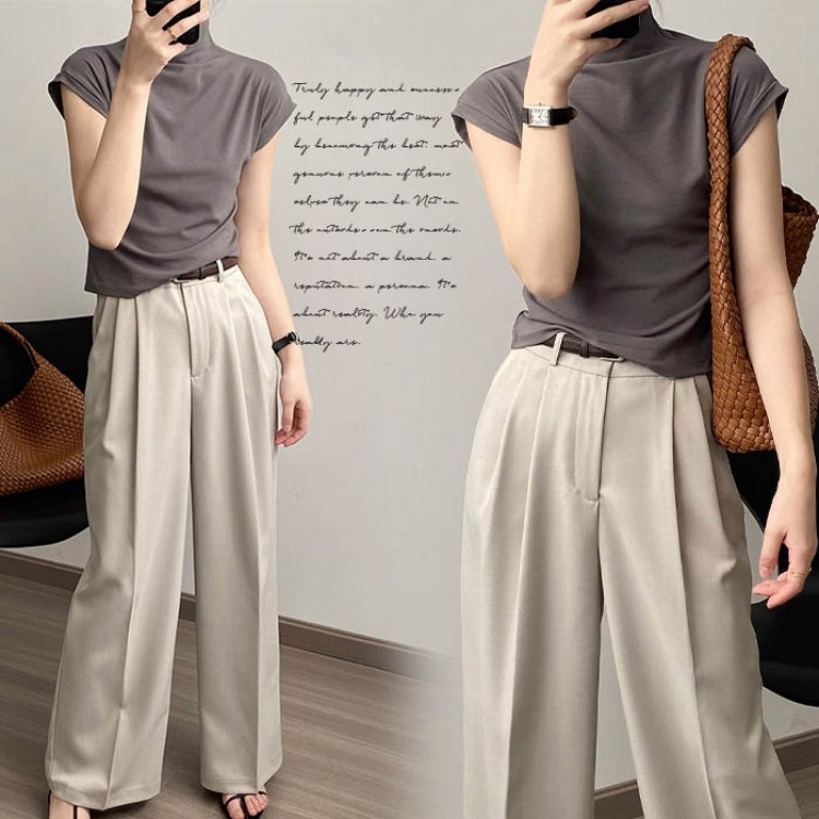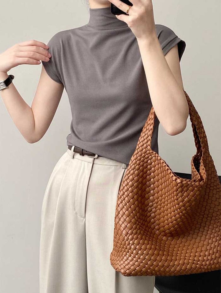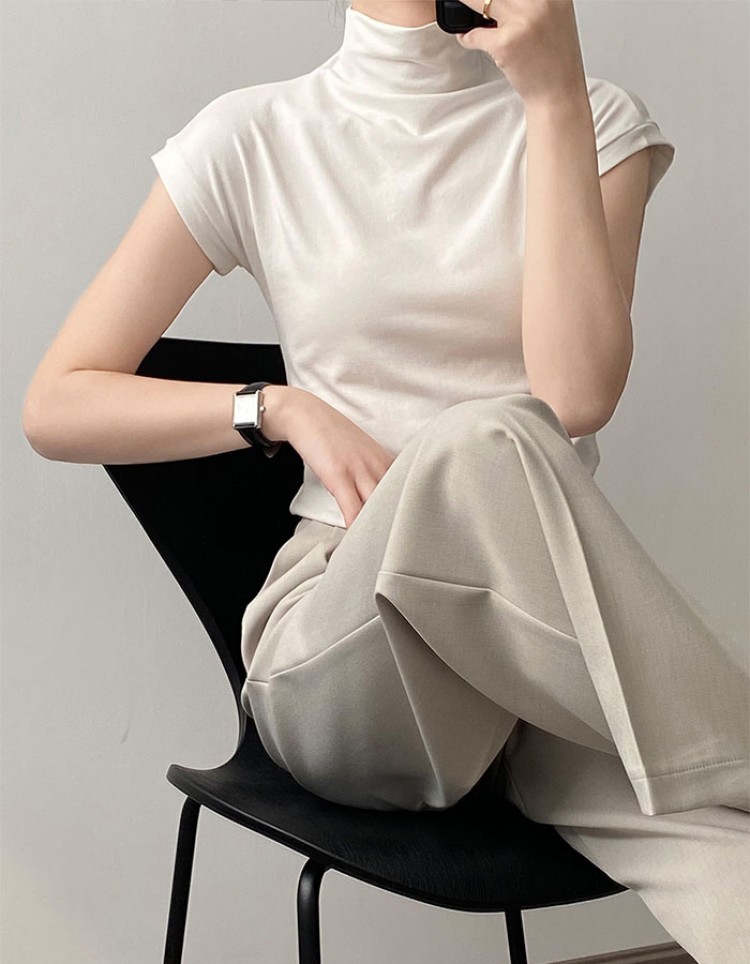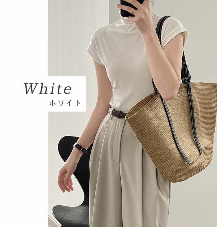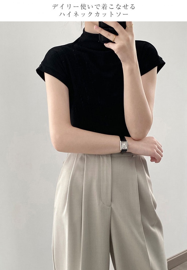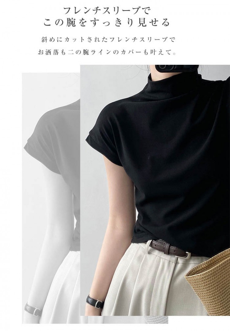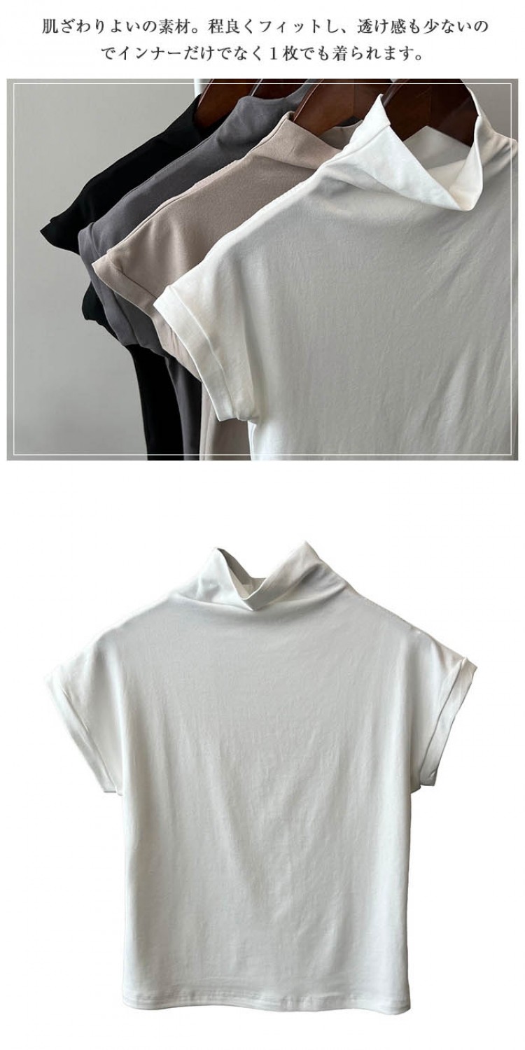 ハイネック カットソー レディース T トップス Tシャツ カットソー 人気 ホワイト ベージュ グレー ブラック M L