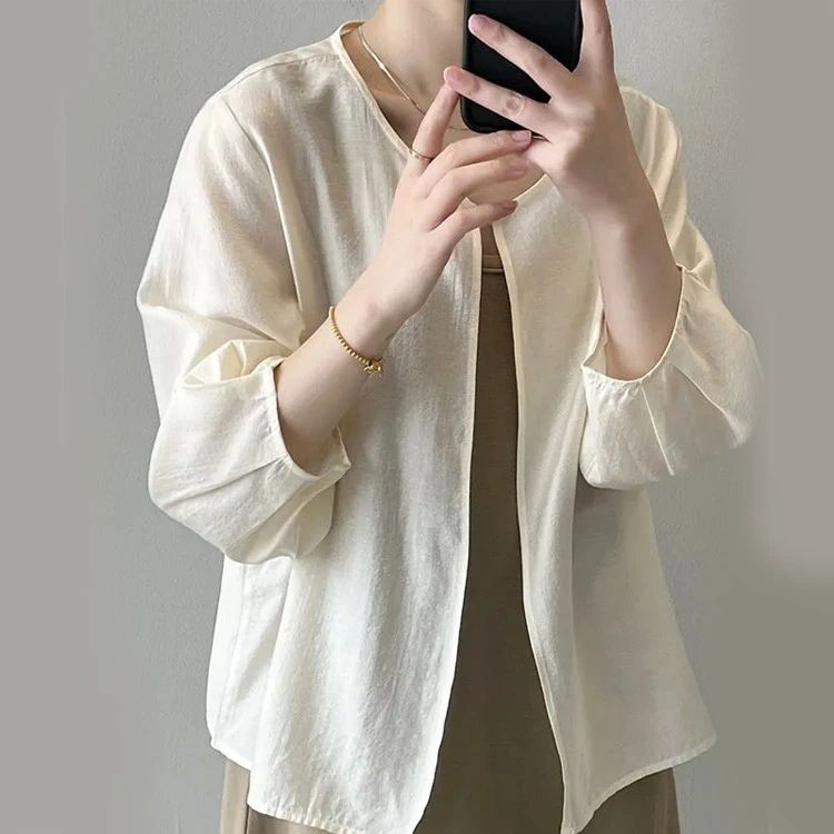 長袖 レディース ノーカラー 日焼け対 トップス カーディガン ボレロ 続々入荷中 アイボリー ブラック ベージュ M L XL 2XL 3XL