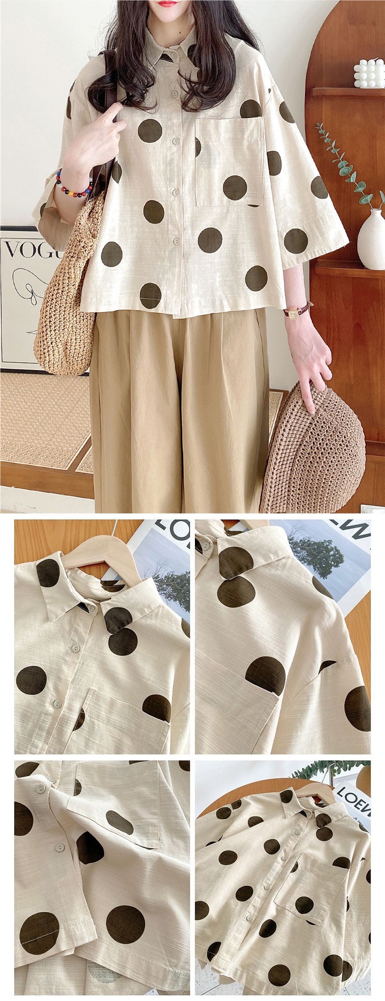 レディース 半袖シャツ Tシャツ リネ トップス Tシャツ カットソー 通販 水玉 子熊 M L XL XXL