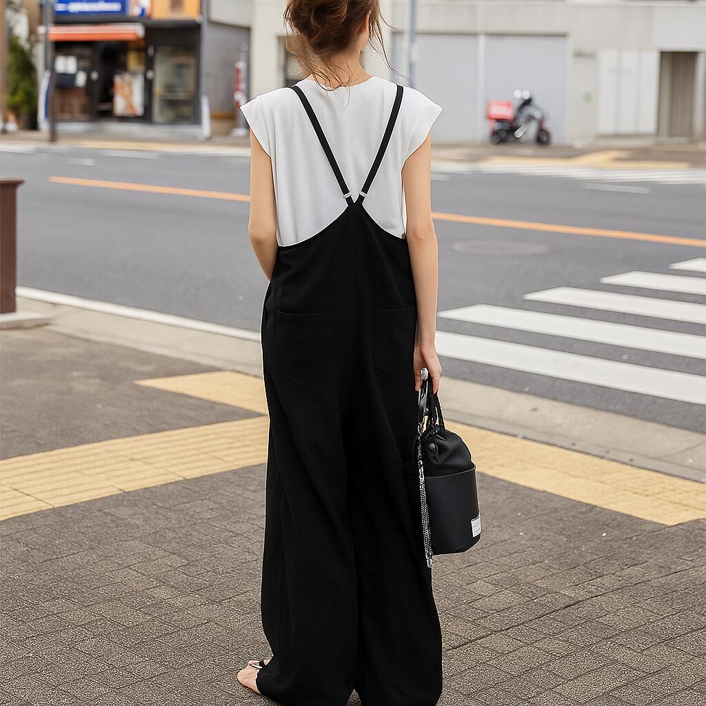 サロペット ワンピース 半袖 Vネック ワンピース 超目玉商品 ブラック カーキ