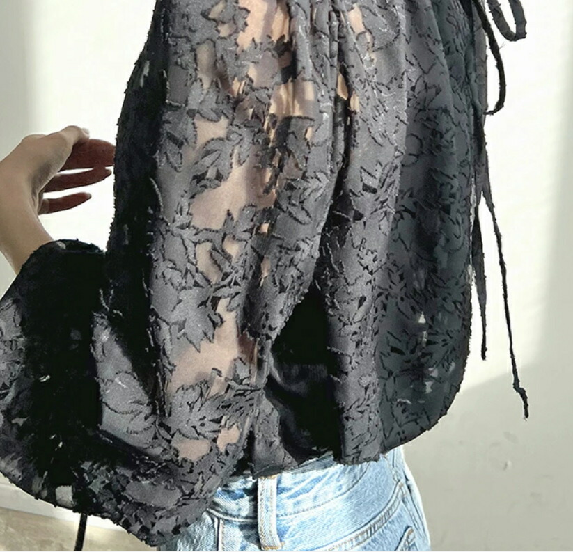 シアースリーブ ドッキングシャツ ボウタイシャツブラウス