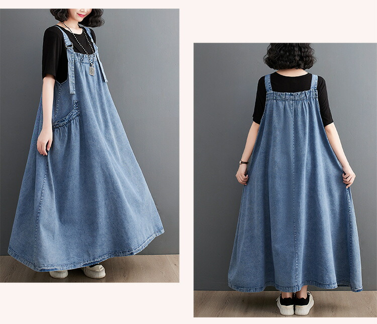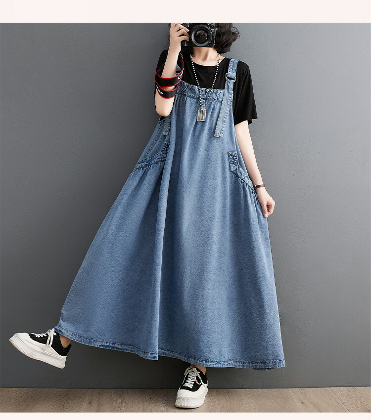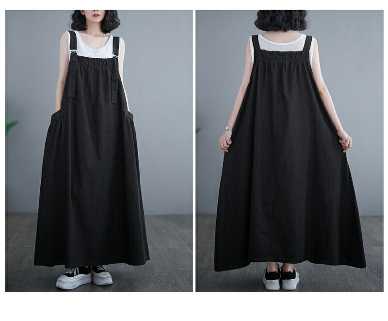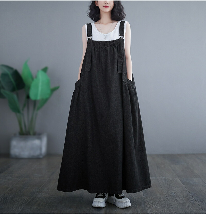 ワンピース 夏ワンピ デニムサロペット ワンピース 続々登場 ブラック ブルー M L XL XXL