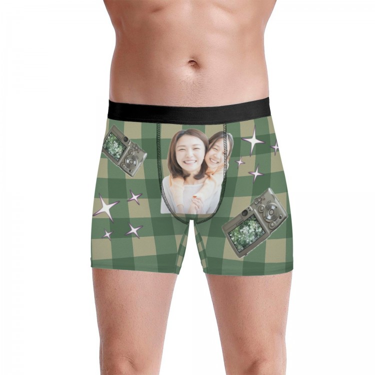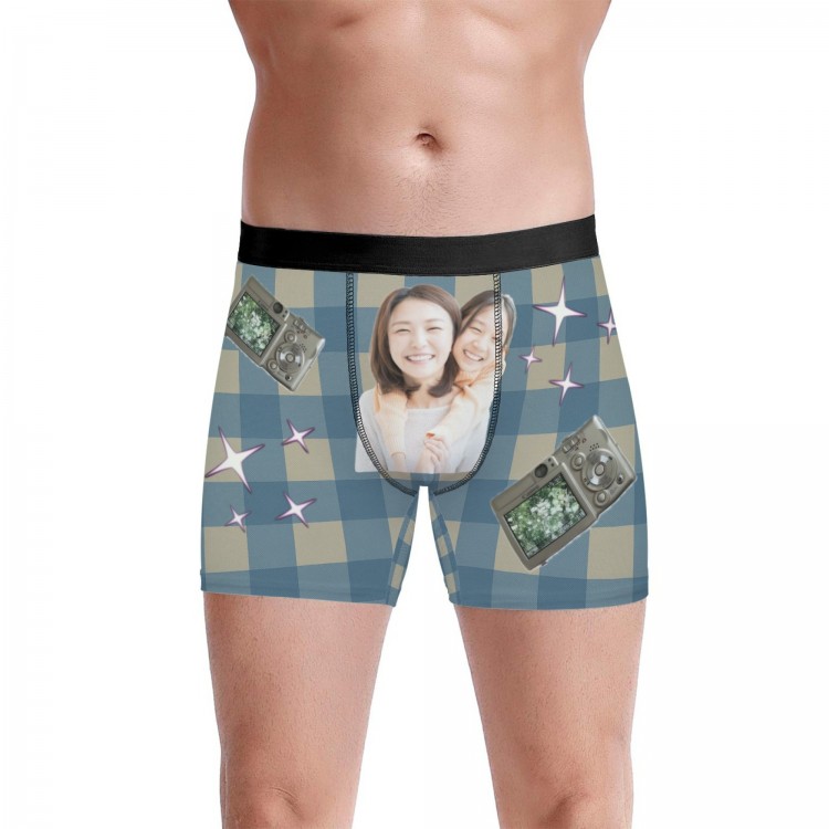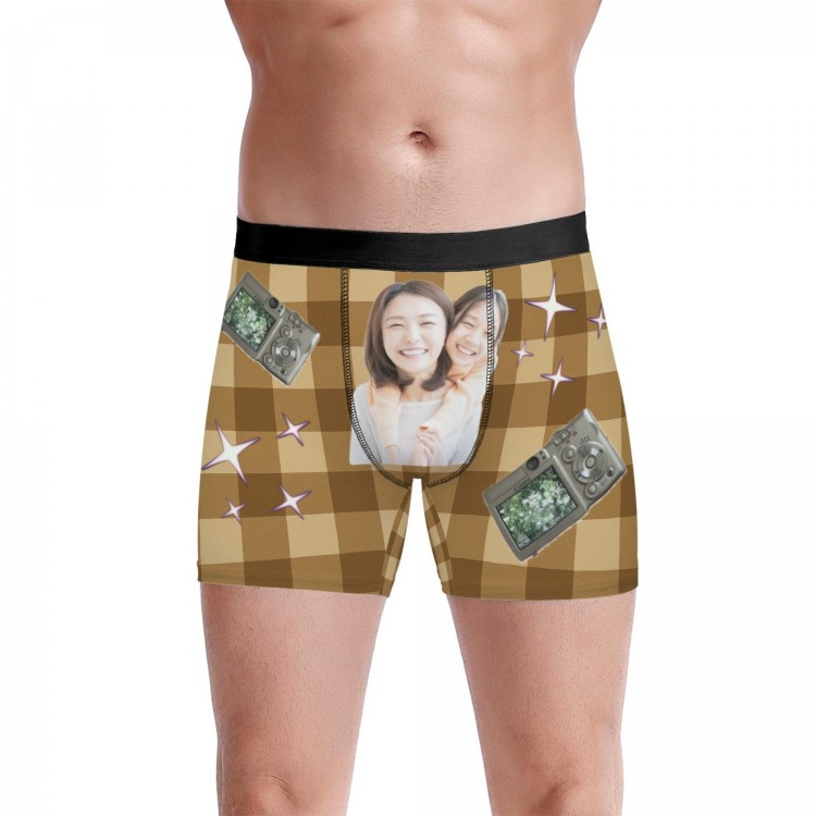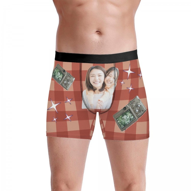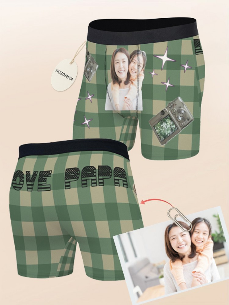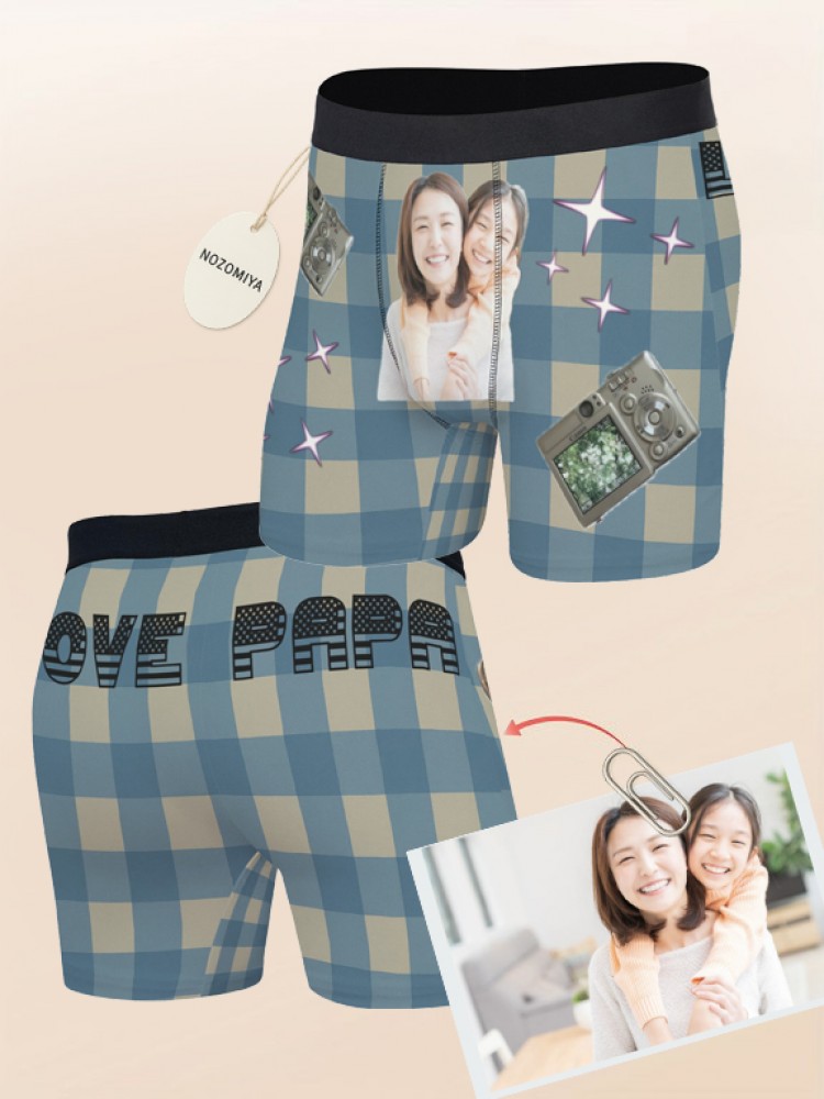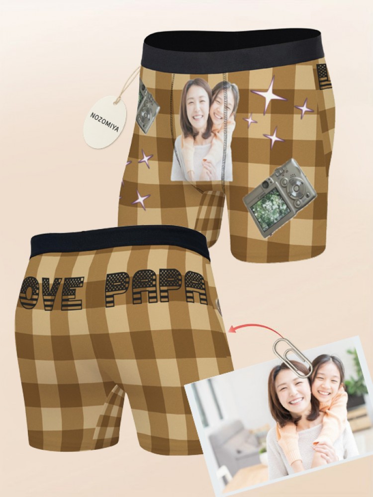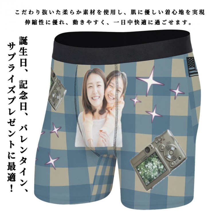 下着 ボクサーブリーフ 写真入りパンツ ユニセックス インナー 下着 豊富 レッドチェック ブラウンチェック ブルーチェック グリーンチェック S M L XL 2XL 3XL