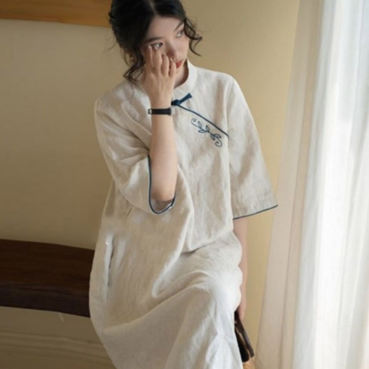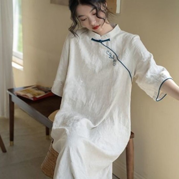チャイナボタン ナチュラル 半袖 チャ ベージュ ピンク S M L XL 2XL 3XL 4XL