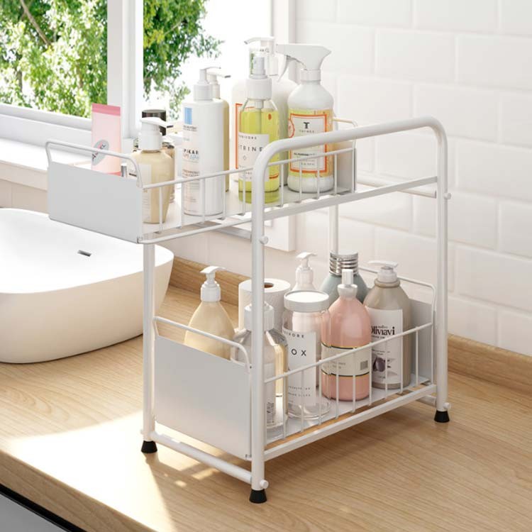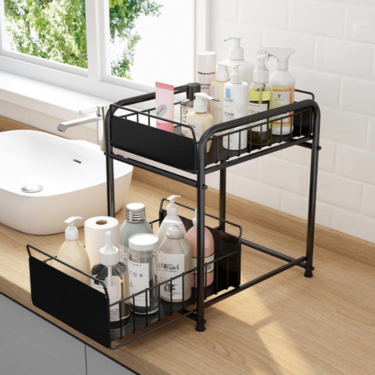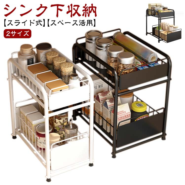 シンク下収納 スライド式 ラック 2段 ホワイトS ホワイトL ブラックS ブラックL