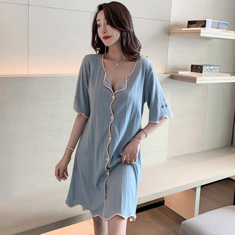 レディース ワンピース 半袖 パジャマ ブルー ピンク ホワイト M L XL 2XL
