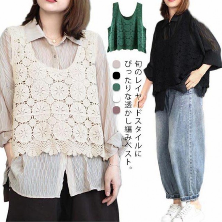 全5色 かぎ編み ベスト トップス 透 レディースファッション 豊富な品揃え ベージュ ブラック グリーン ホワイト パープル