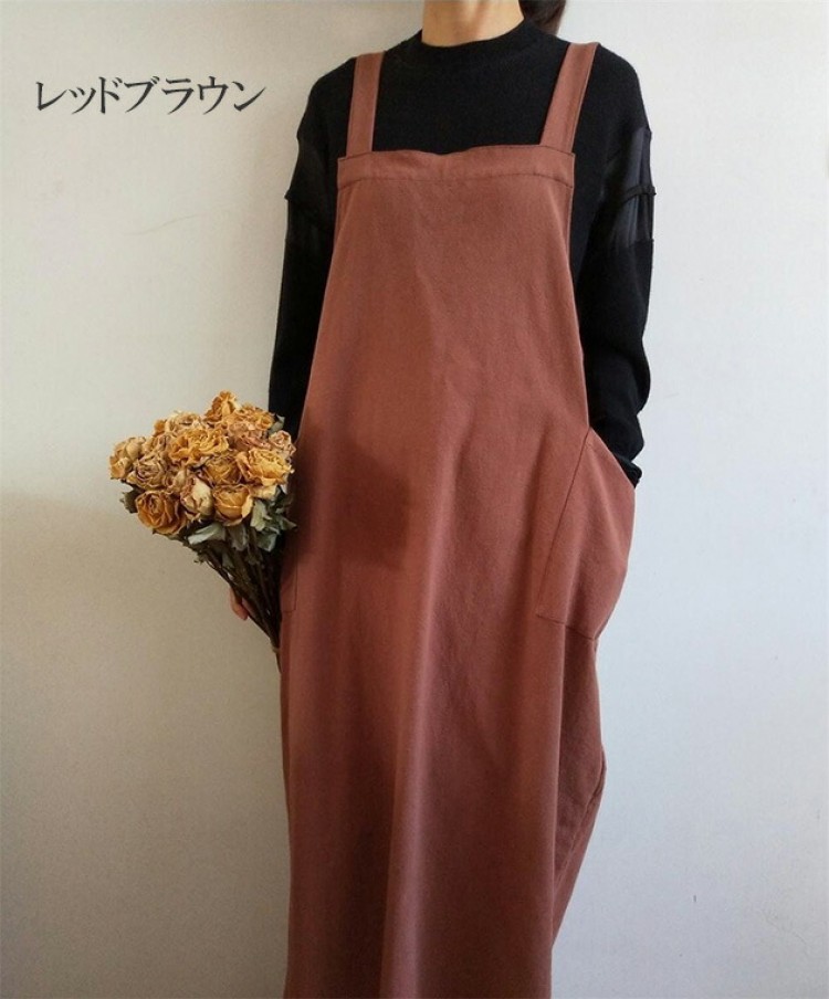 レディース アースカラー かぶり ゆったり ロング 無地 保育士 美容師 花屋