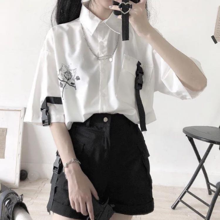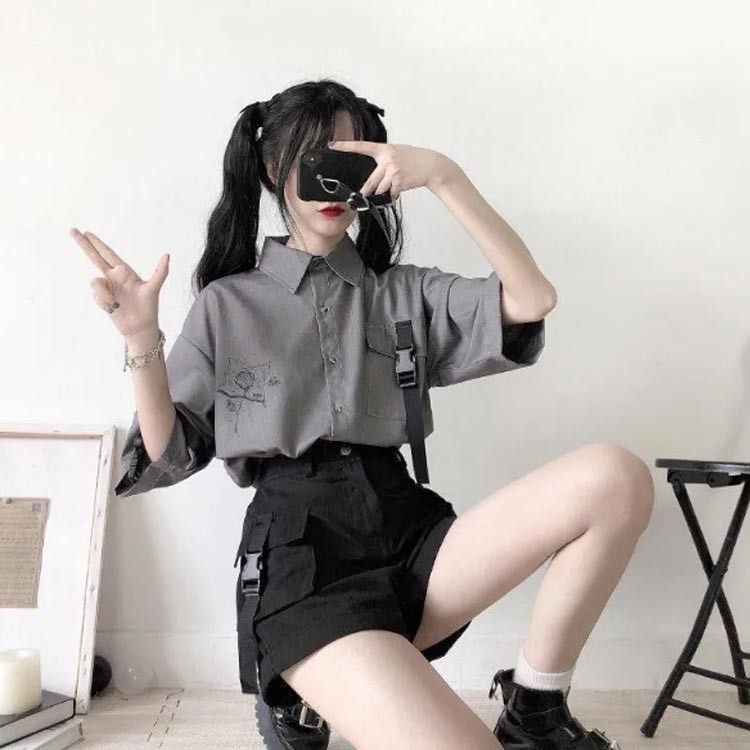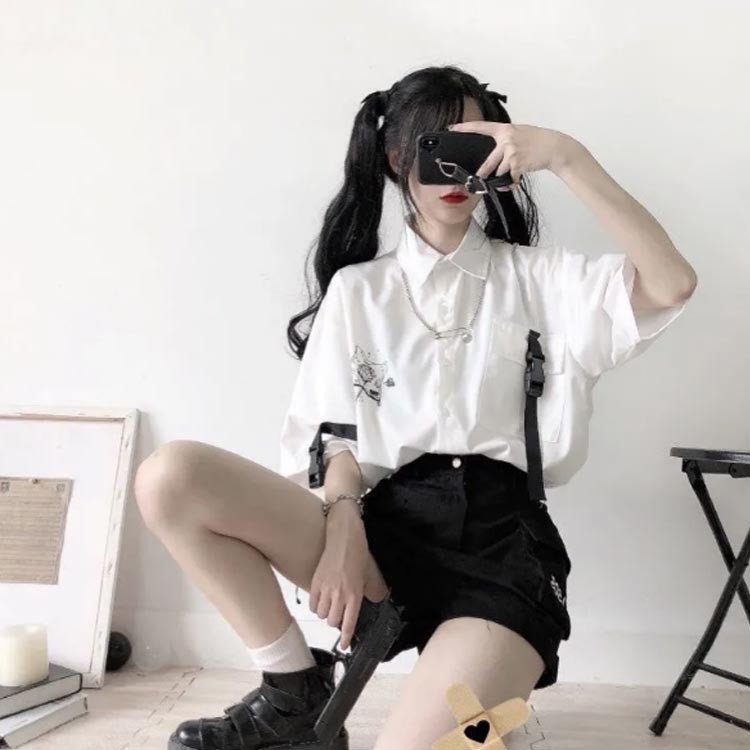 地雷系 女子 セットアップ レディース トップス シャツ ブラウス 新登場! シャツグレー+パンツブラック シャツホワイト+パンツブラック S M L XL 2XL