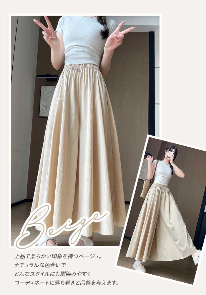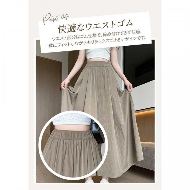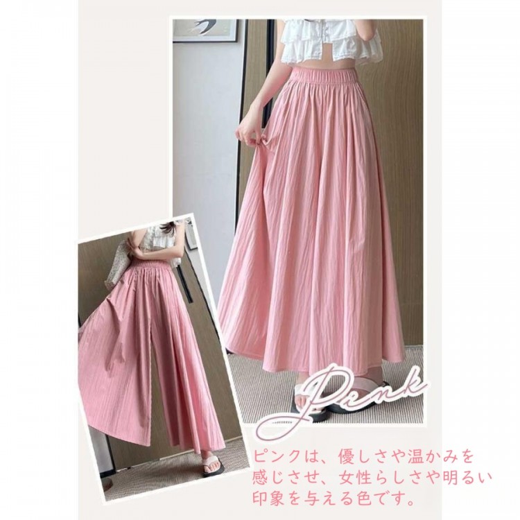 ワイドパンツ レディース 夏涼感 ガウ レディースファッション 人気 ブルー ピンク ベージュ グレー ブラウン ブラック ガウチョパンツ ロングスカート