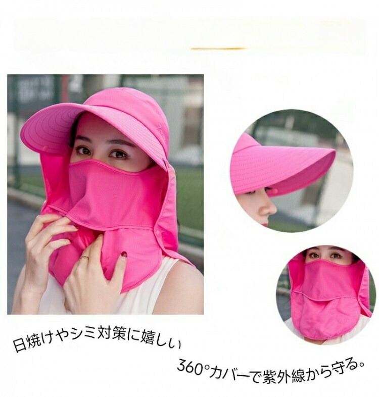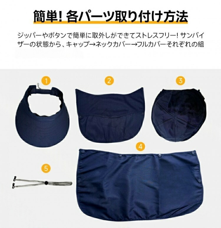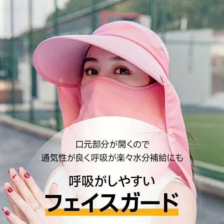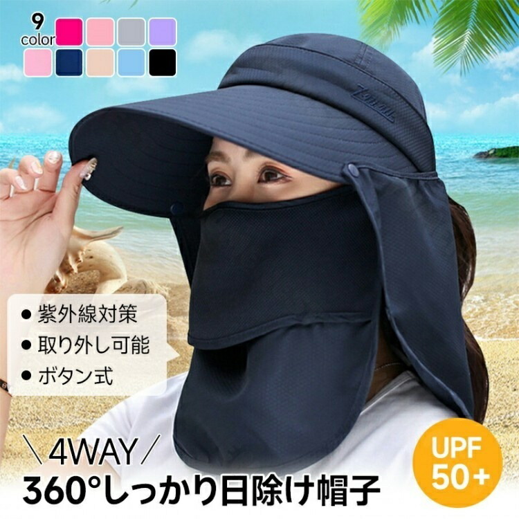 日除け帽子 4way UVカット 紫外線対策 日焼け防止 グッズ 春 夏 秋 日よけ 帽子 農作業 フェイスカバー 水分補給 ネックカバー キャップ サンバイザー レディース UPF50+ 4way 折りたたみ 収納 ボタン取り外し 顎紐 つば広 無地 スポーツ