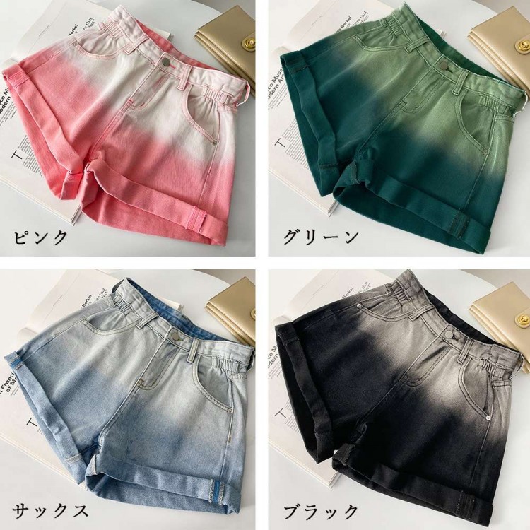 デニム ショートパンツ美脚グラデーショ ブラック/L ブラック/XL ブラック/M サックス/L サックス/XL サックス/M グリーン/L グリーン/XL グリーン/M ピンク/L ピンク/XL ピンク/M