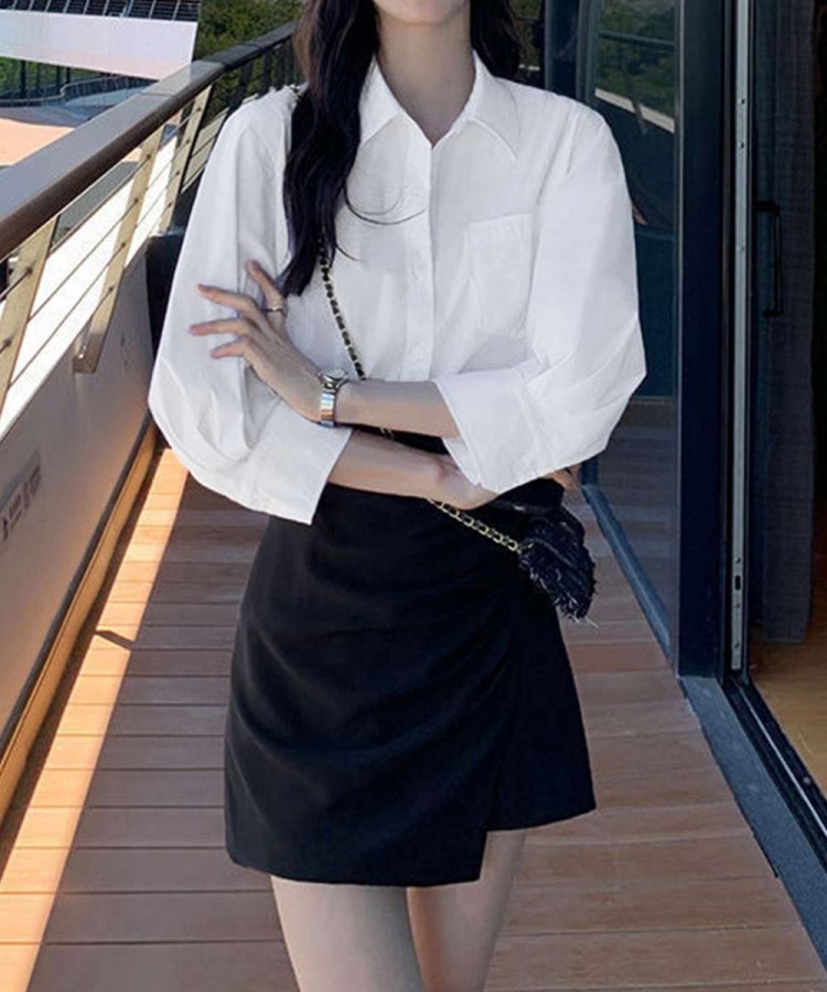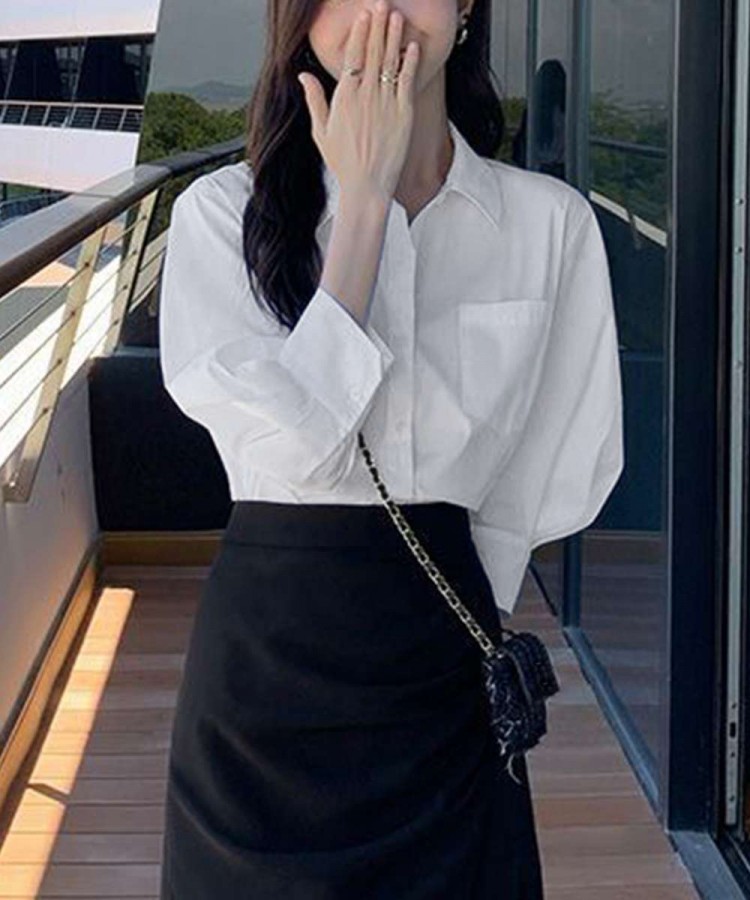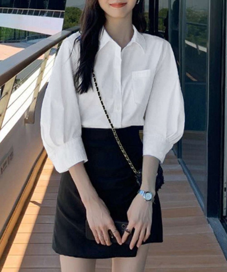 シャツブラウス レディース 七分袖シャ レディースファッション 新登場! ホワイト/L ホワイト/M