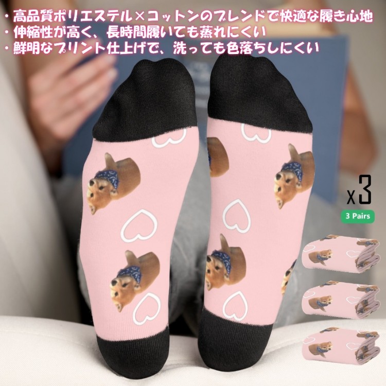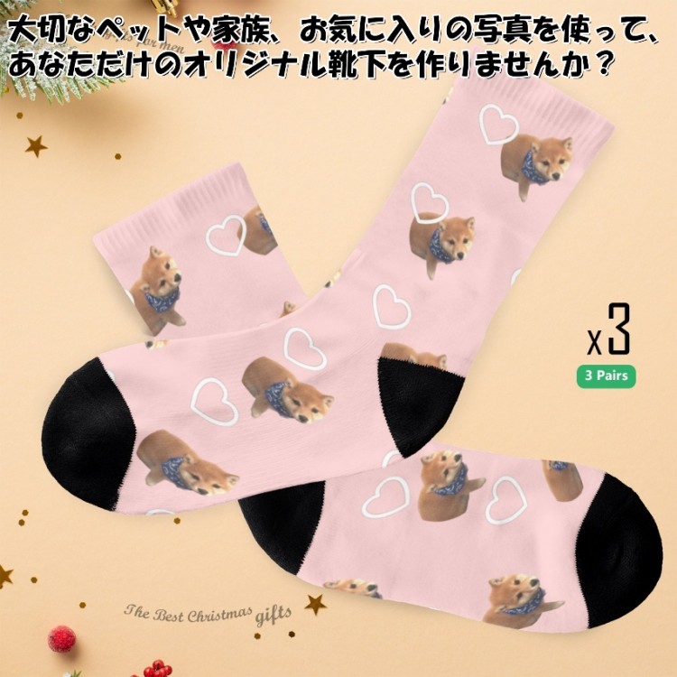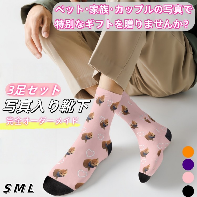 靴下 オーダーメイド 写真入り ペット メンズ 靴下 レッグウェア ステテコ 早い者勝ち S M L ブラック パープル オレンジ ピンク