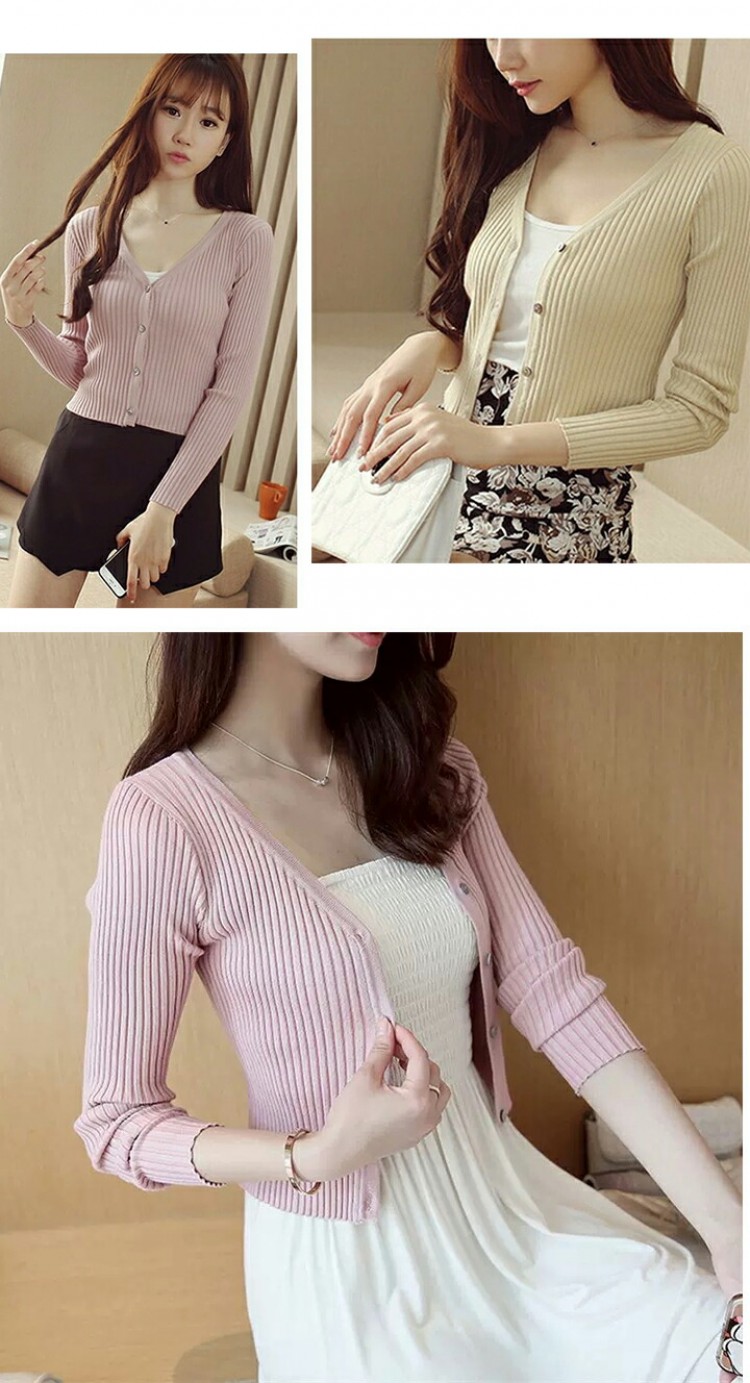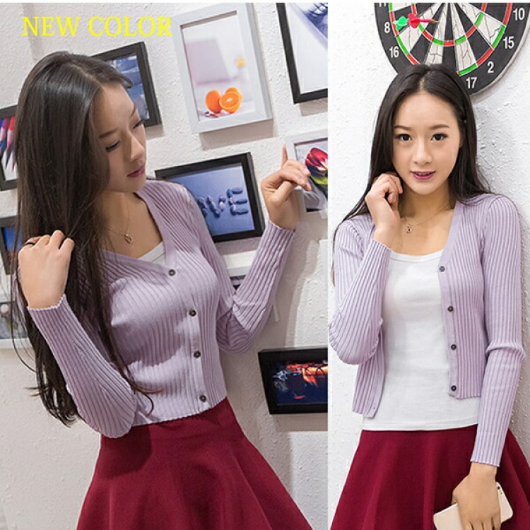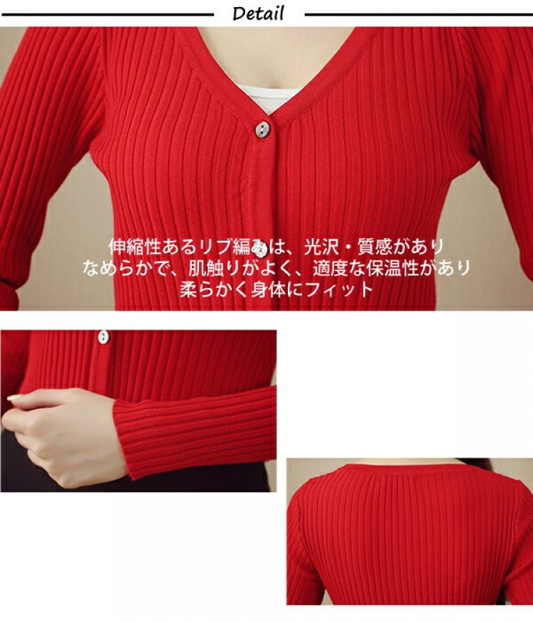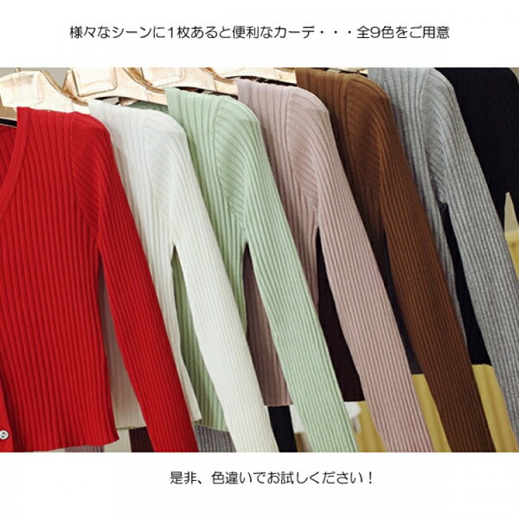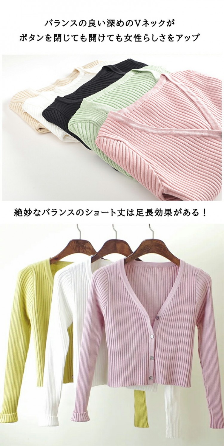 1B26 Vネックリブ編みショートカー ホワイト ブラック グレー ベージュ ピンク ダークグリーン レッド パープル ブルー
