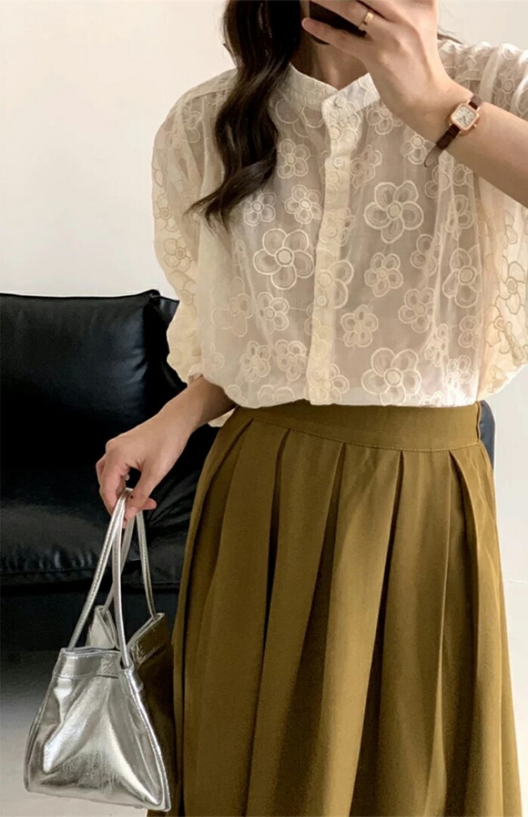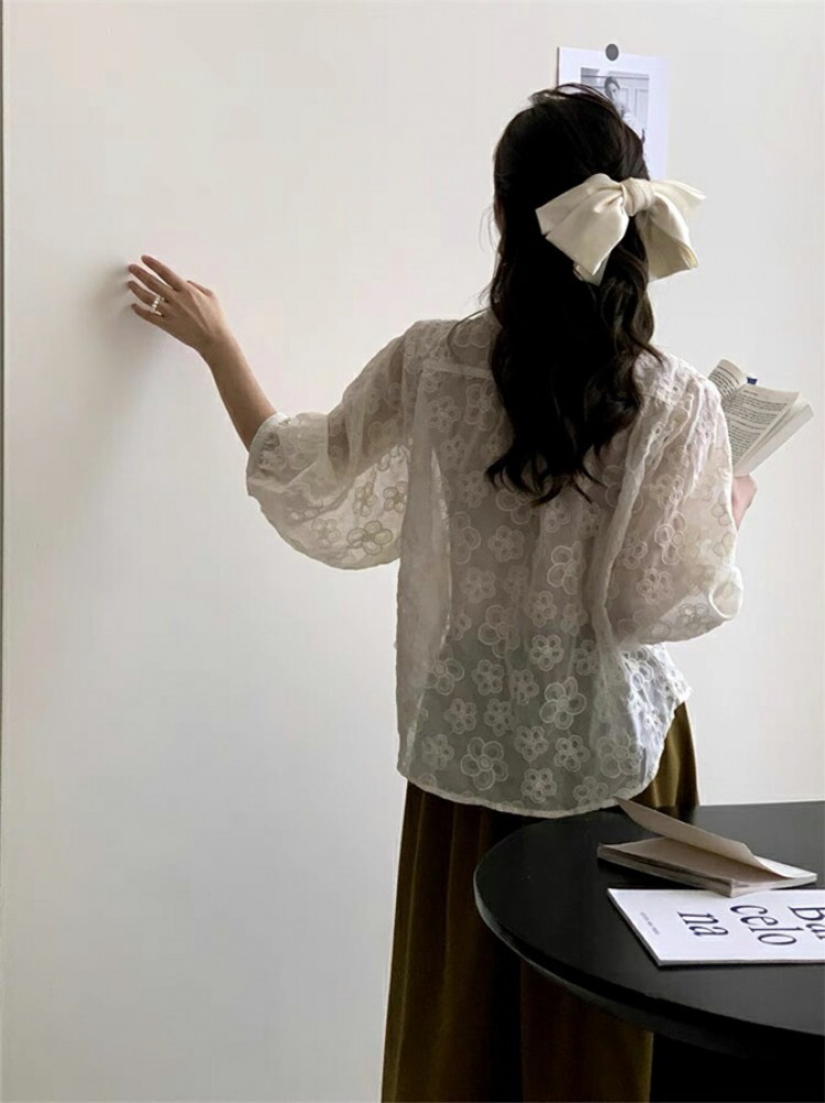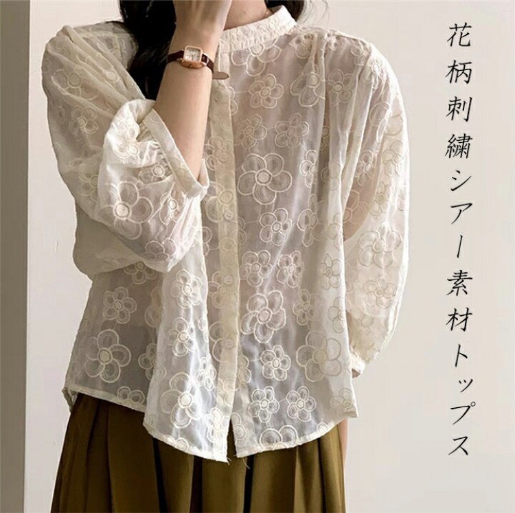 花柄刺繍シアー素材トップス ブラウス レディースファッション 超目玉商品 S M L
