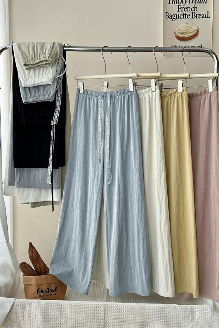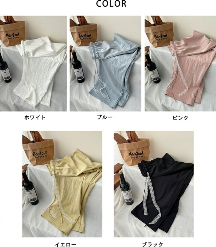 イージーパンツハイウエストパンツ レデ ホワイト ブルー ピンク イエロー ブラック