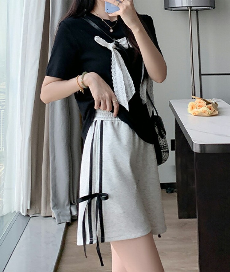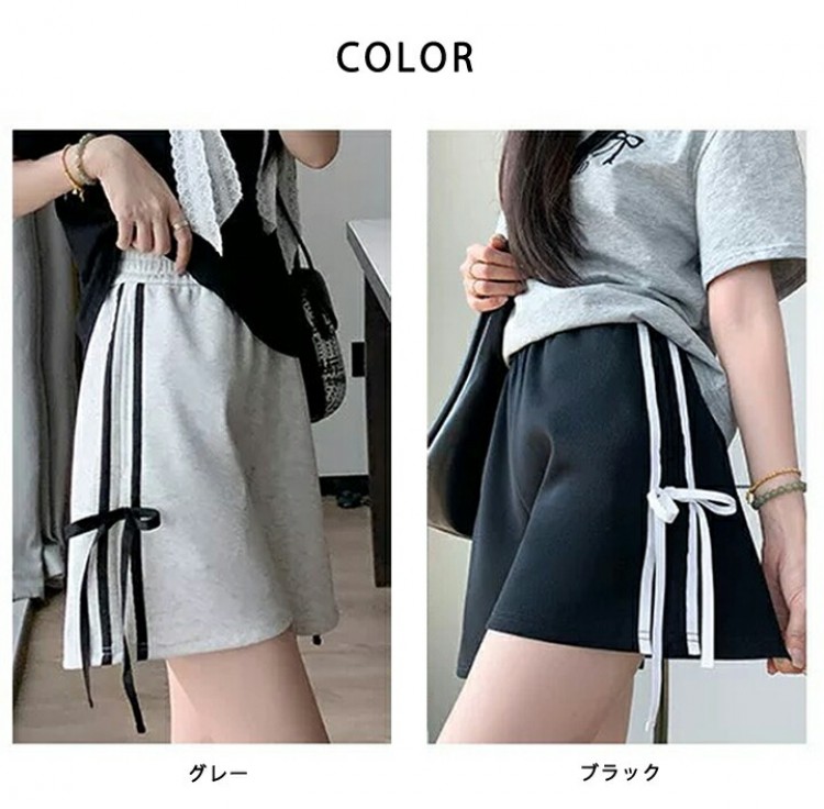 サイトリボンショートパンツ ラインパン S M L XL グレー ブラック