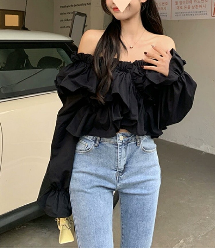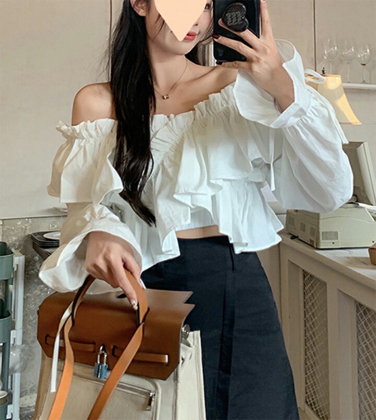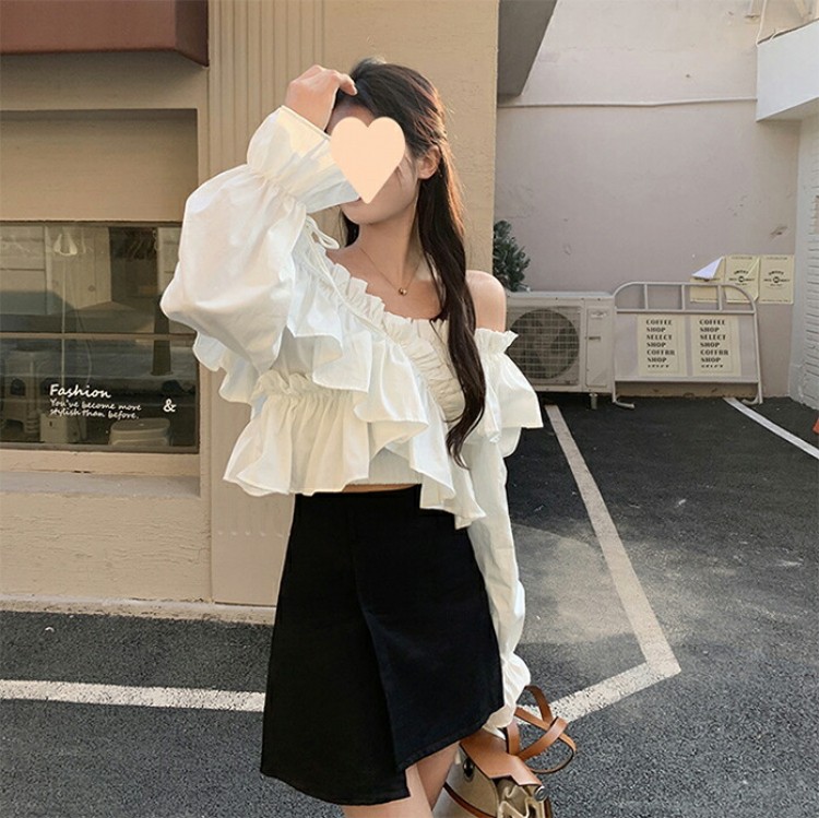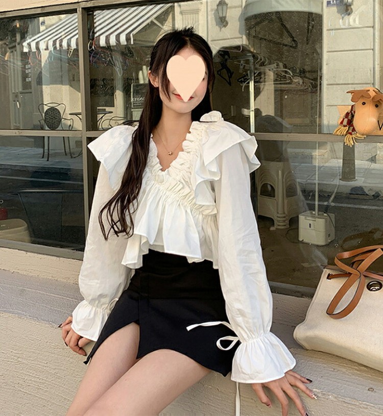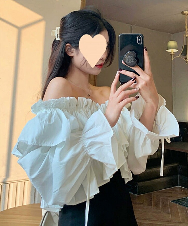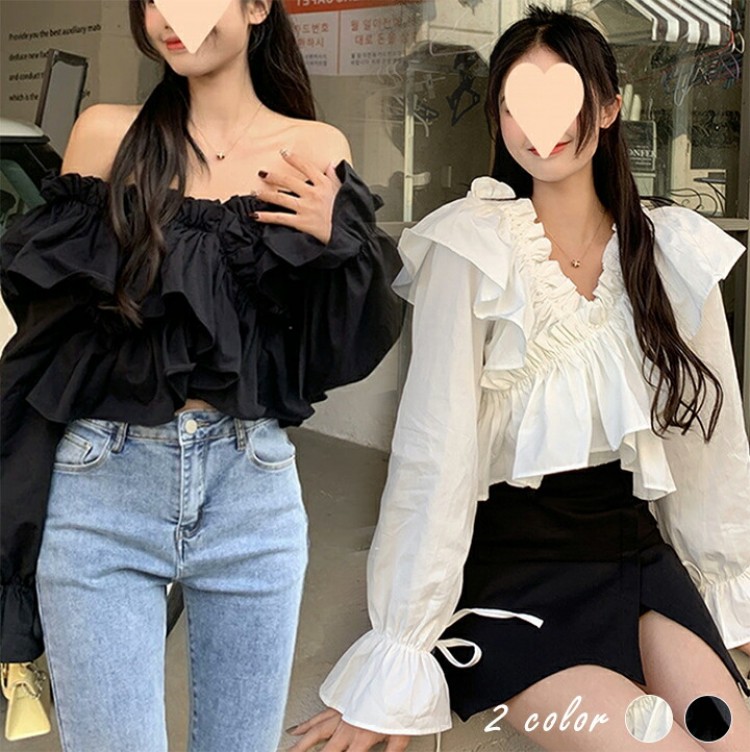 フリルリボンショート丈ブラウス レディ レディースファッション 続々登場 S M L XL ホワイト ブラック