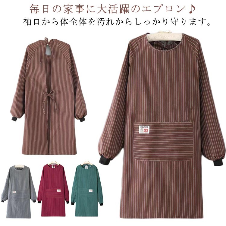 エプロン ロング 大人用 ポケット付き キッチン用品 食器 調理器具 豊富 グレー コーヒー グリーン レッド