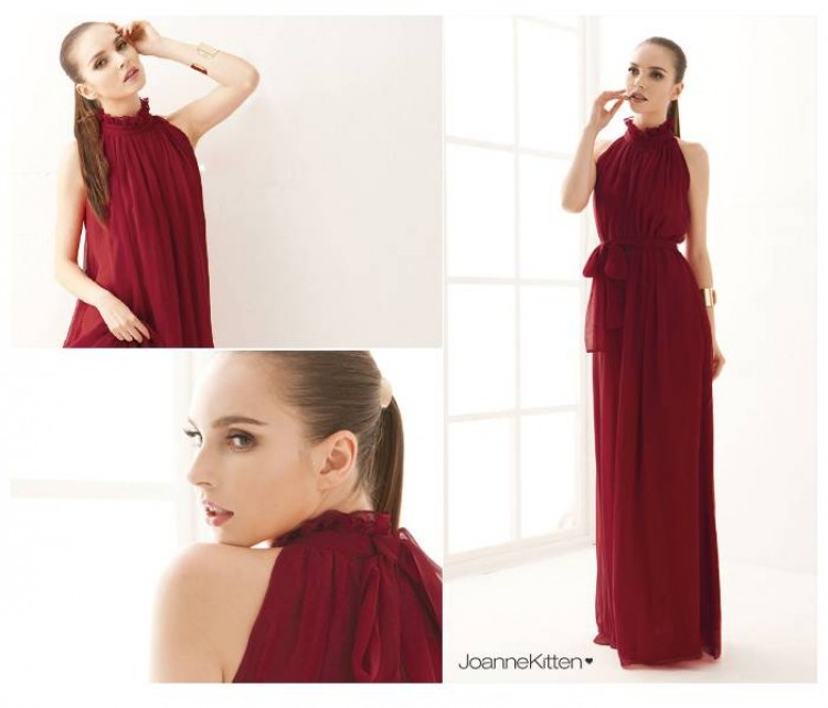 ホルターネック ドレス ワンピース ロ スイカレッド ワインレッド カーキ グリーン ブラック パープル ピンク ネイビー