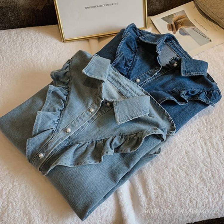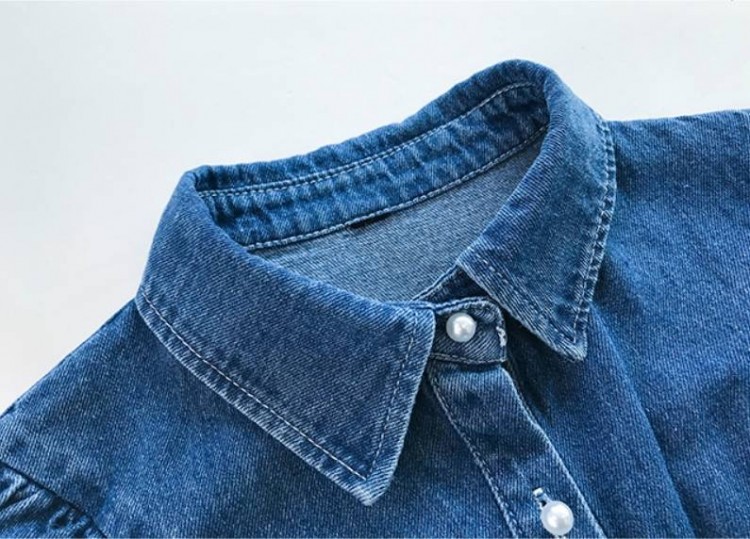 シャツ トップス ブラウス 長袖 ボリ レディースファッション 続々登場 ライトブルー ダークブルー M L XL 2XL 3XL 4XL