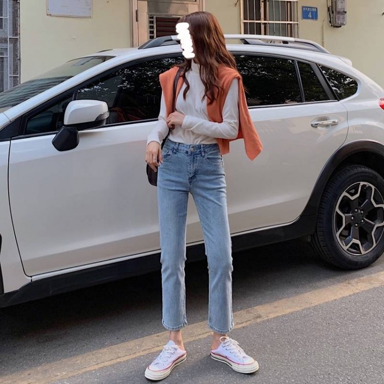 デニムパンツ 春 秋 レディース Gパ ブラック ライトブルー S M L