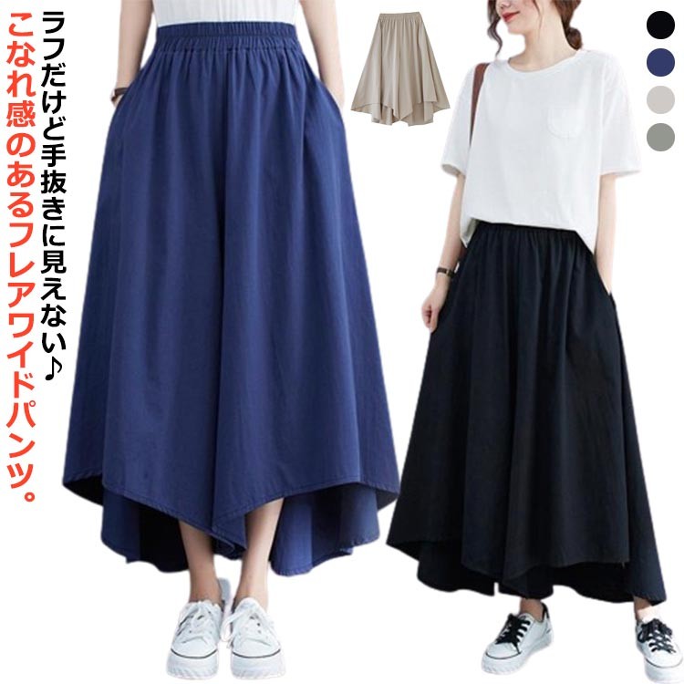 ワイドパンツ レディース スカーチョ ベージュ グリーン ブルー ブラック XL 2XL
