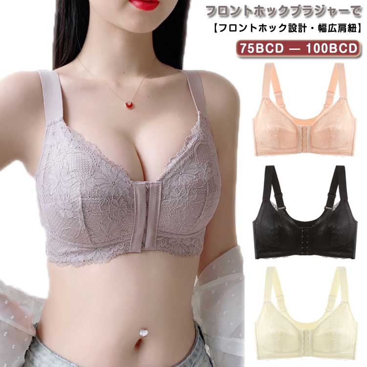 フロントホック ブラジャー ノンワイヤ インナー 下着 ナイトウエア 特集 シャンパン色 肌色 パープル ブラック 75BCD 80BCD 85BCD 90BCD 95BCD 100BCD