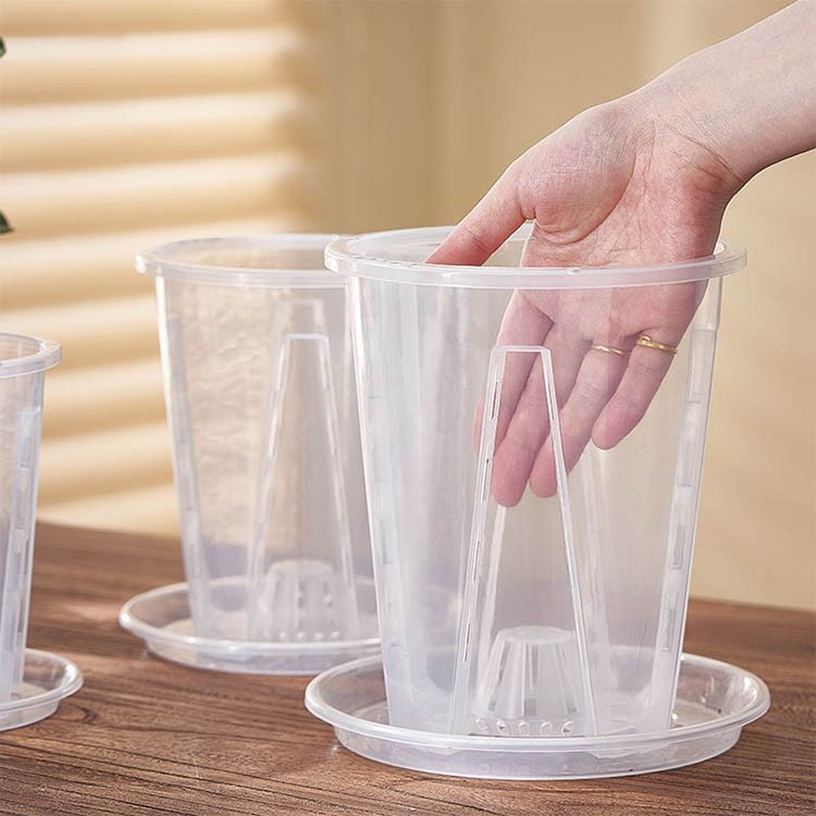 【クリアポット】育苗ポットは透明で、いつでも植物の根の成長や土の水分を観察できます。従来のセラミック ポットと比較して、クリア オーキッド ポットは初心者がランを育てるのに適しており、水やりの量を簡単に制御できます。